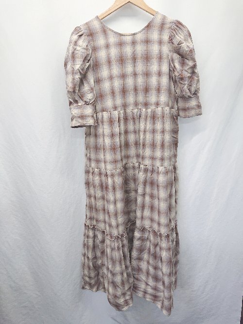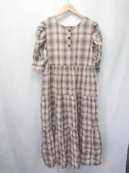 ◇ ⊂ Alley by w closet アリー ティアード 半袖 膝下丈 ワンピース サイズF ベージュ マルチ レディース E