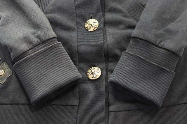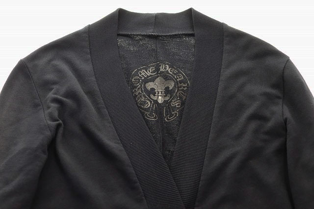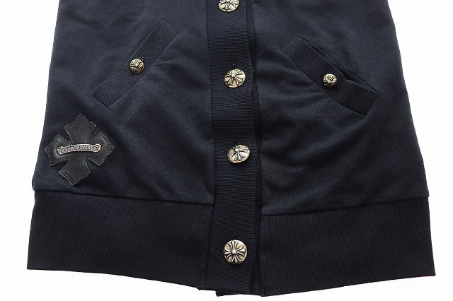 クロムハーツ CHROME HEARTS クロスボール ボタン ニット カーディガン ブラック Sサイズ レザーパッチ 【ブランド古着ベクトル】☆AA★● 250614