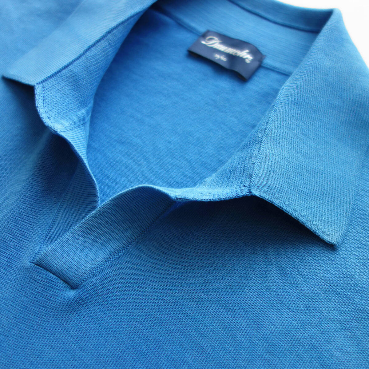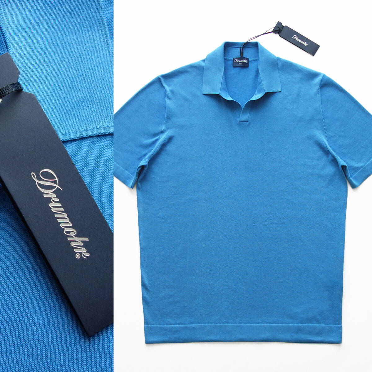 【 Drumohr ドルモア 】 新品 春夏 ドライコットン30ゲージ半袖スキッパーニットポロシャツ スカイブルー 46 48,400円 M