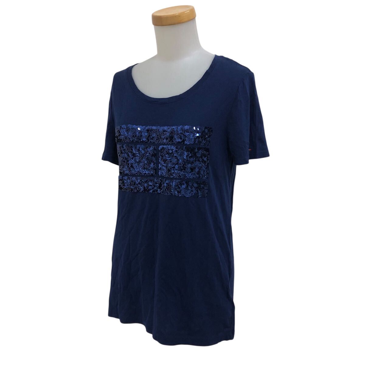 K317-2 TOMMY HILFIGER トミーヒルフィガー 半袖 Tシャツ シャツ スパンコール ネイビー レディース 女性用 XS