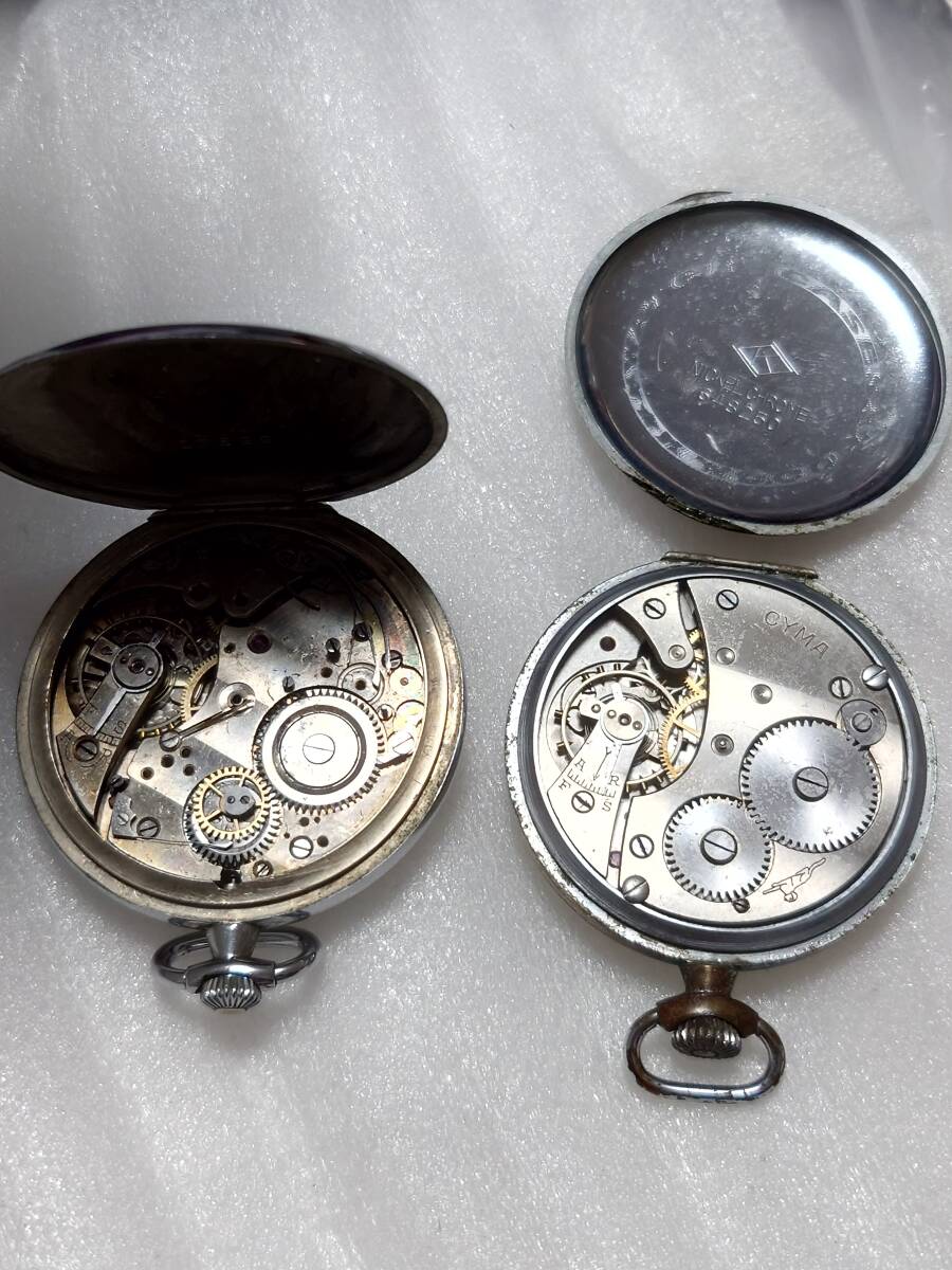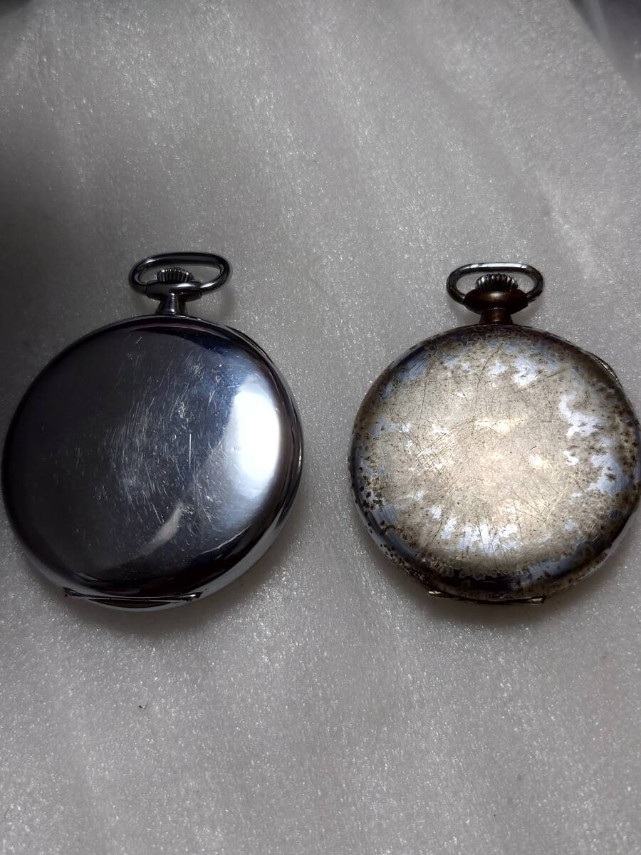 懐中時計のROSEO(クロノグラフ)&CYMA (スモセコ付)の手巻きです。本体のみ。径約43ミリ位(リューズ除く)&径約42ミリ位(リューズ除く)。アンティークなため、全体的にスレ、キズなどあります。どちらも動作していないため、ジャンク品扱いです。リューズでの時間調整は、どちらも可能です。部品の欠品があるかもしれませんので、修理されるか、部品取りにいかがでしょうか。品物が到着後、受け取り連絡を頂けない方が多いので、必ず受け取り連絡をお願いいたします。見落としがあるかもしれませんが、ノークレーム、ノーリターンでお願いいたします。3日以内の連絡と入金をお願いいたします。レターパック600。