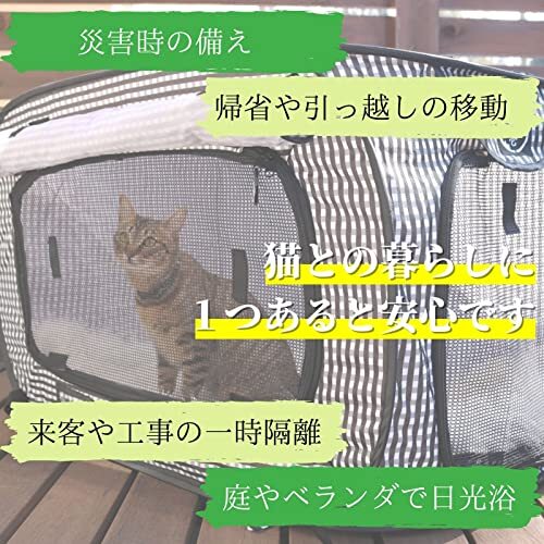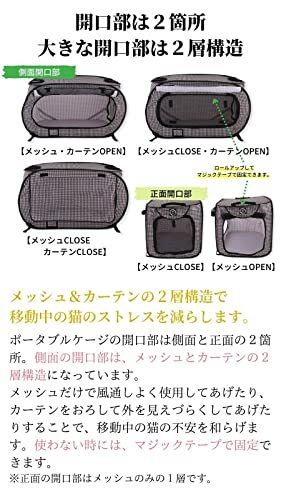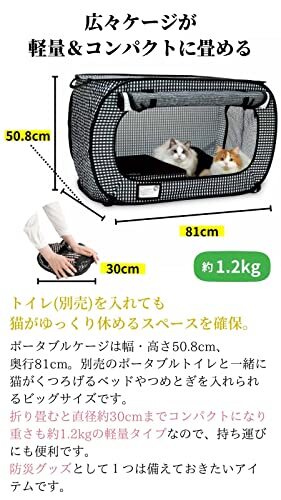 ・無し 無し 4580471860380・・PatternName:ケージ・【小さく折り畳めて防災グッズとしても】猫壱のポータブルケージは、組立時高さ:50.8cm 奥行き81cmの大型でありながら、折りたためば直径約30cmの小さな円形に。使わない時は小さく畳んで収納できるので、普段使いはもちろんのこと、いざという時の防災グッズとして1家に1個あると役立つグッズです。・【開口部は2箇所。1箇所はメッシュとカーテンの2層構造】正面側に小さな入り口が1つ、側面には大きく開く入り口が1つあります。側面側の大きな入り口は、メッシュとカーテンの2層構造。メッシュだけで使用すれば通気性抜群、カーテンつきで使用すればプライバシーを確保。使わない時はくるくと丸めてマジックテープで固定できます。・【フリースマット&収納袋つき】付属品としてケージの下に敷いて使えるフリースマット(片面)とケージ以外にポータブルトイレやおもちゃやお薬などが一緒にしまえる収納袋がついています。・【撥水加工で簡単お掃除&お手入れ】ポータブルケージに使用している生地には撥水加工がされています。猫が中で粗相をし●仔猫なら3~4匹。大人の猫でも2匹は余裕で過ごせるゆったりサイズ。 ●小さく折りたたんで収納できます。 ●車のシートにシートベルトで固定できます。 ●フリースマットとケージ、キャリー、トイレをまとめて入れられる収納袋付き(ケージにのみ付属) ●水洗いできます。上部に表札付き。猫ちゃんの名前や住所氏名を記入できる表札もついているので、緊急避難先などで、少し目を離したすきにケージがどこかに動かされて ...