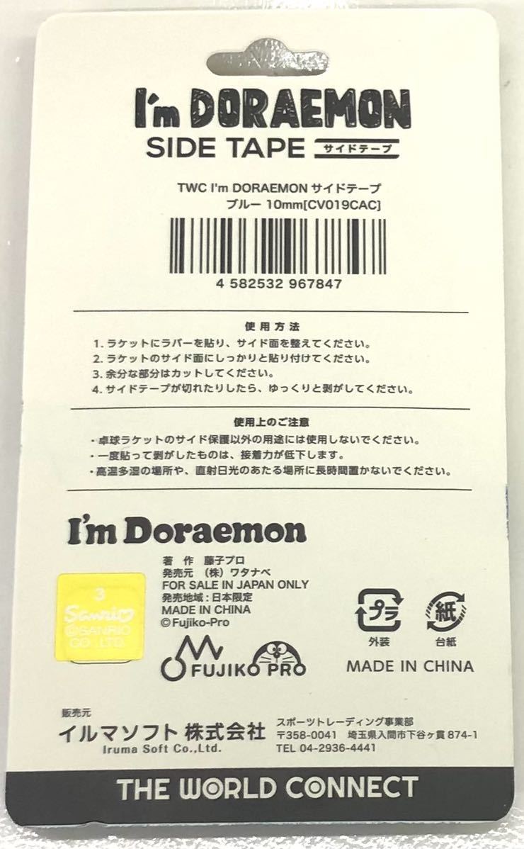 幅10mm 3個セット I’m DORAEMON サイドテープ 卓球 ラケット エッジガード 保護 ドラえもん ブルー 青