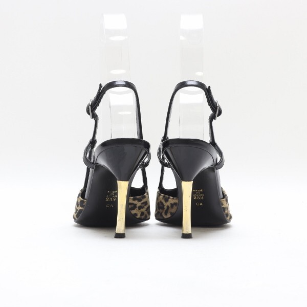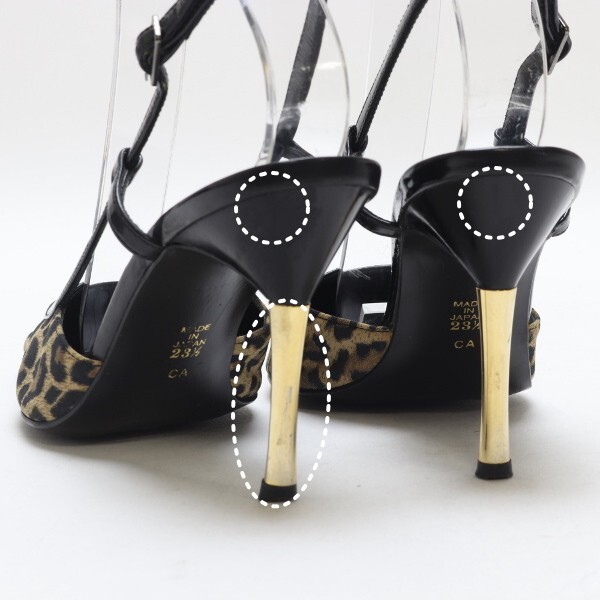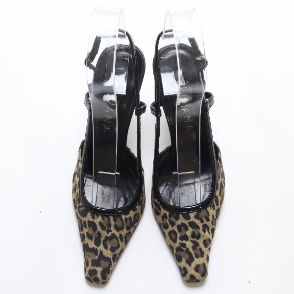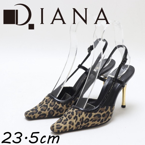 ◆DIANA ダイアナ キャンバス×レザー レオパード ヒョウ柄 バックストラップ スクエアトゥ ヒール パンプス 23.5cm | |