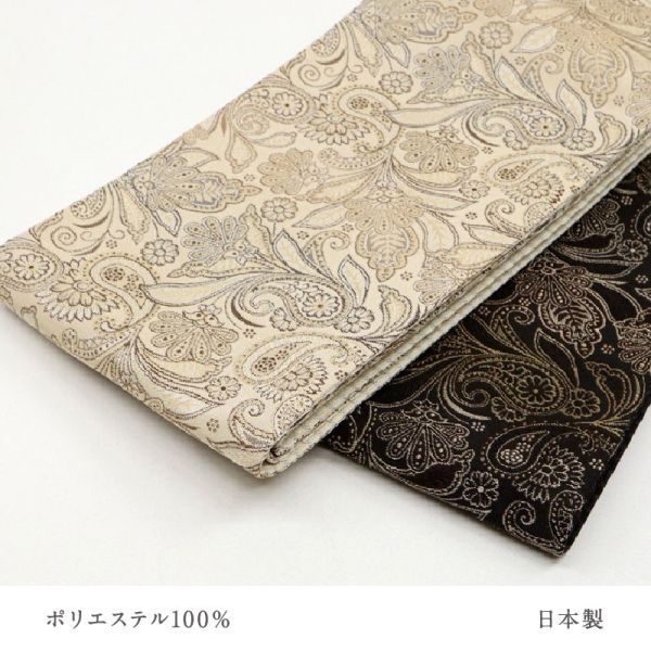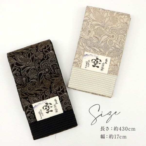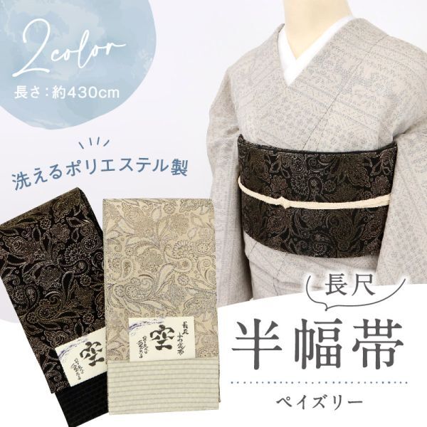 【半幅帯】 空 ペイズリー柄 『ブラック』 長尺 リバーシブル 小袋帯 おしゃれ 半巾帯 ポリエステル 長さ430cm 日本製 K25-45