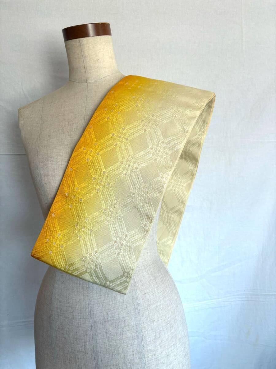 0003★半幅帯*黄色*山吹*和柄*帯*長さ354cm*浴衣*着物*和装*和服*レトロ*アンティーク*レディース*女性*お得★
