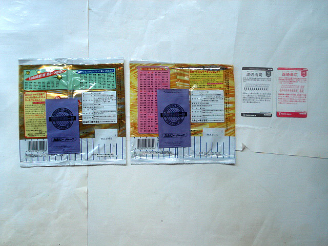 カルビー 1996年 日本ハムファイターズ 第1版・第2版揃い 空袋 パッケージ カード2枚付属 プロ野球チームチップス 東京スナック