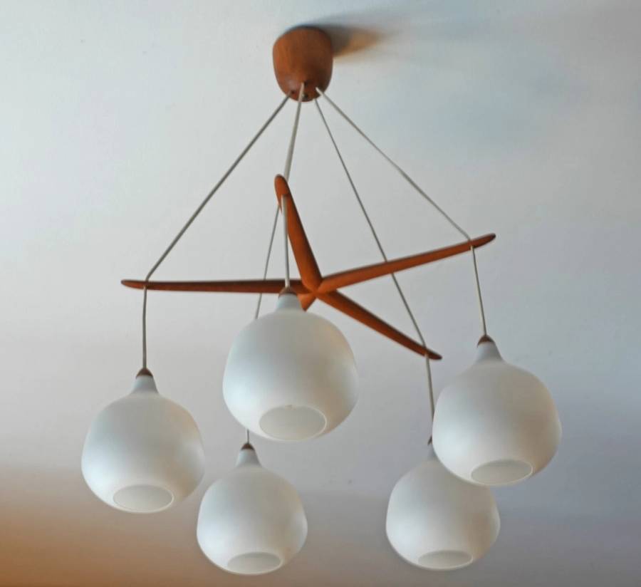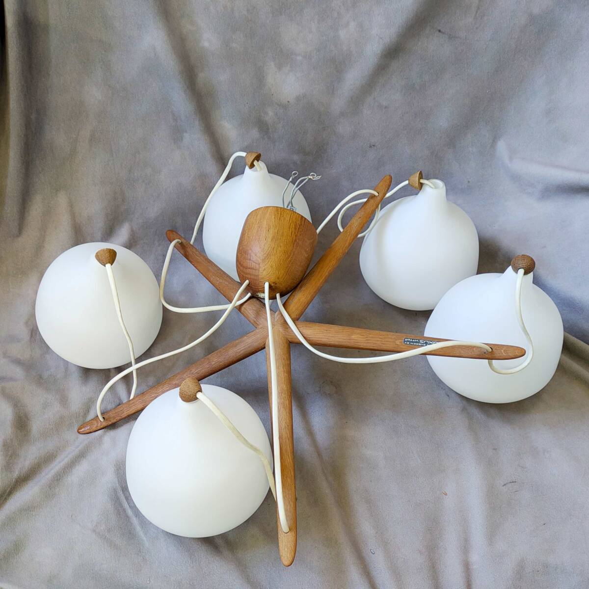 ●ヤフオク!初登場●1950~60年代 Luxus Vittsjo Uno & Osten Kristiansson 511 5灯 ペンダントランプ チーク フロストガラス●
