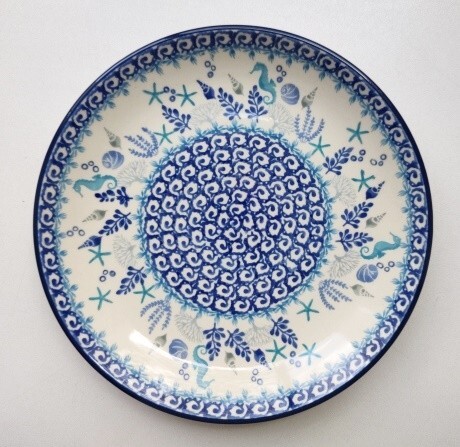 x742 ポーランド陶器 20cm 皿/プレート 海 タツノオトシゴ ポーリッシュポタリー 食器