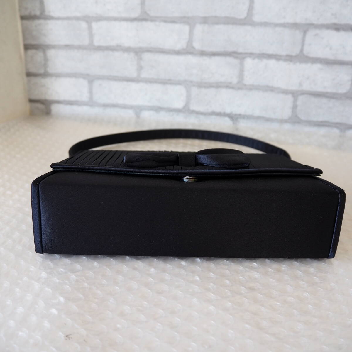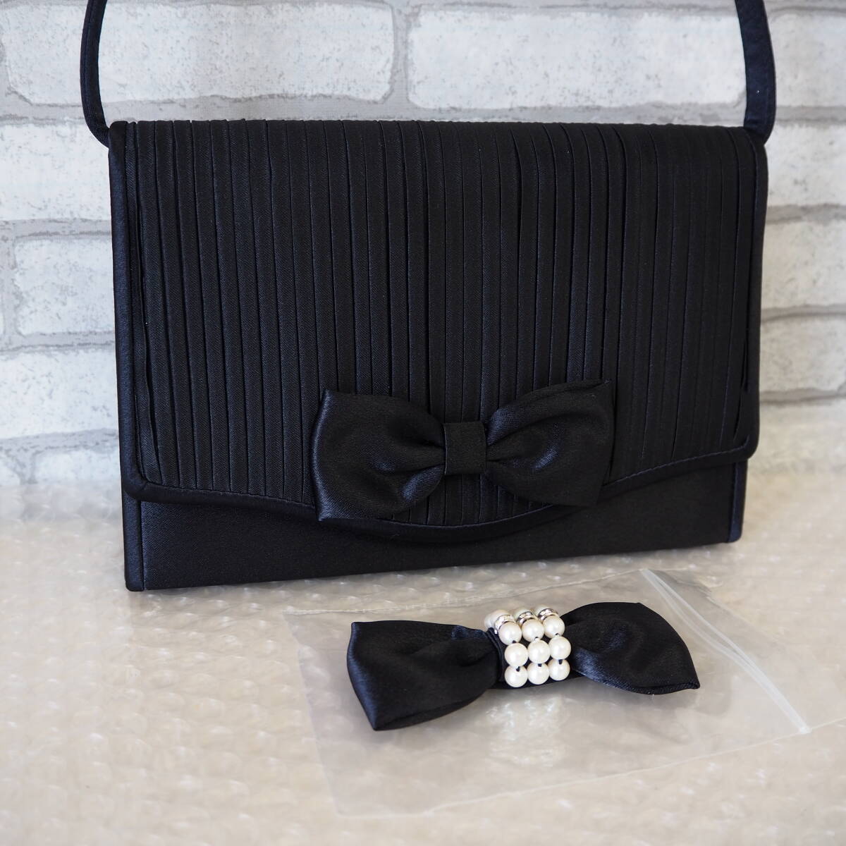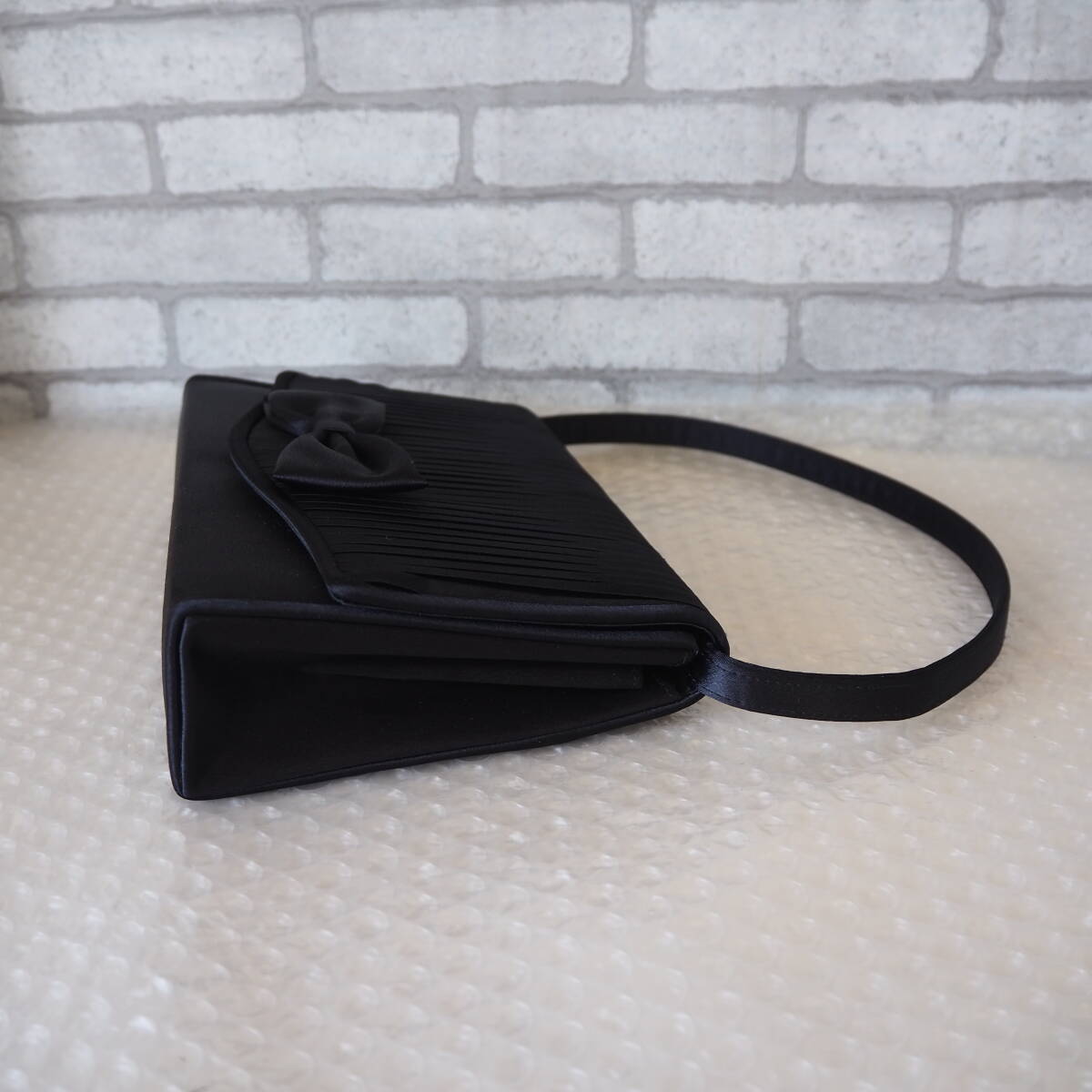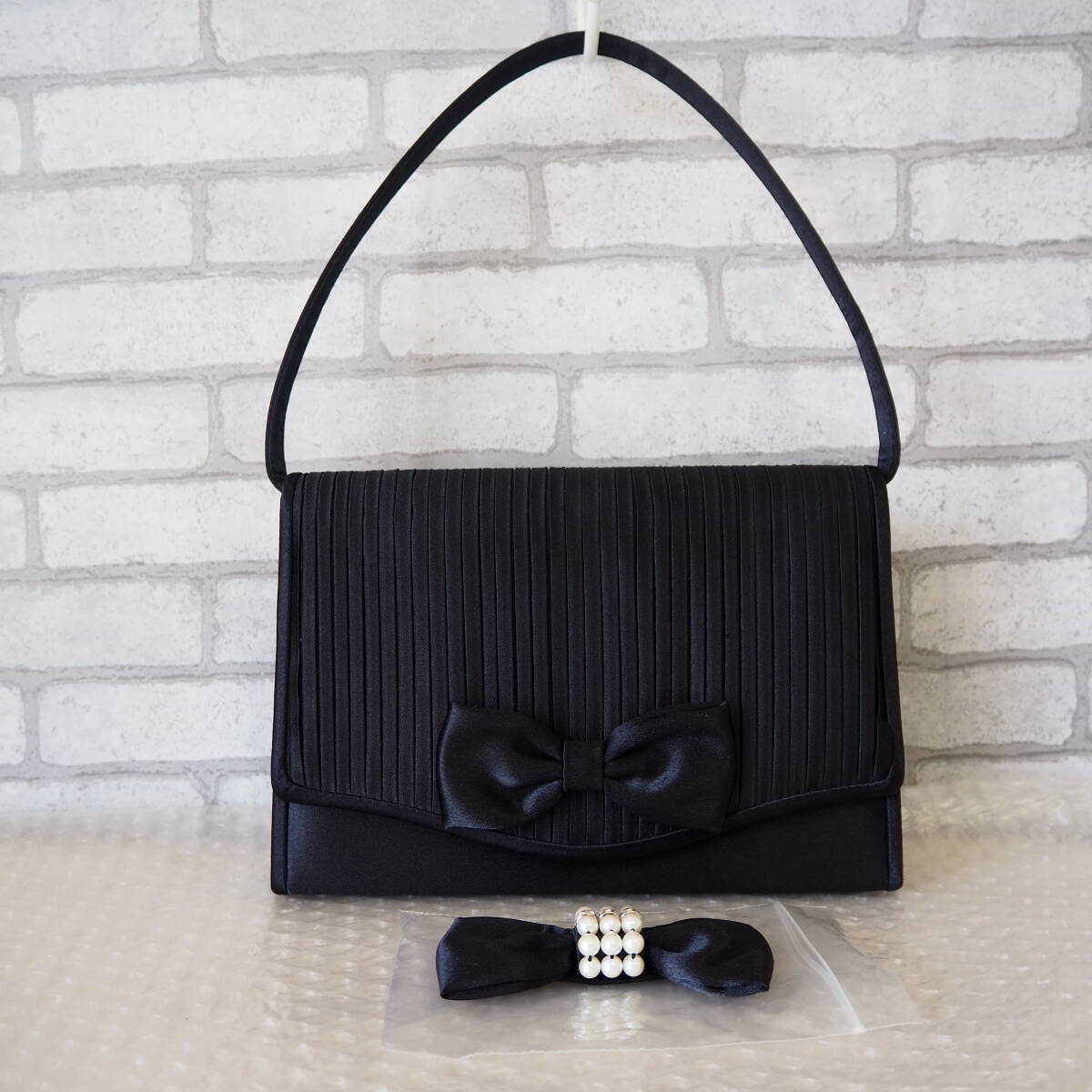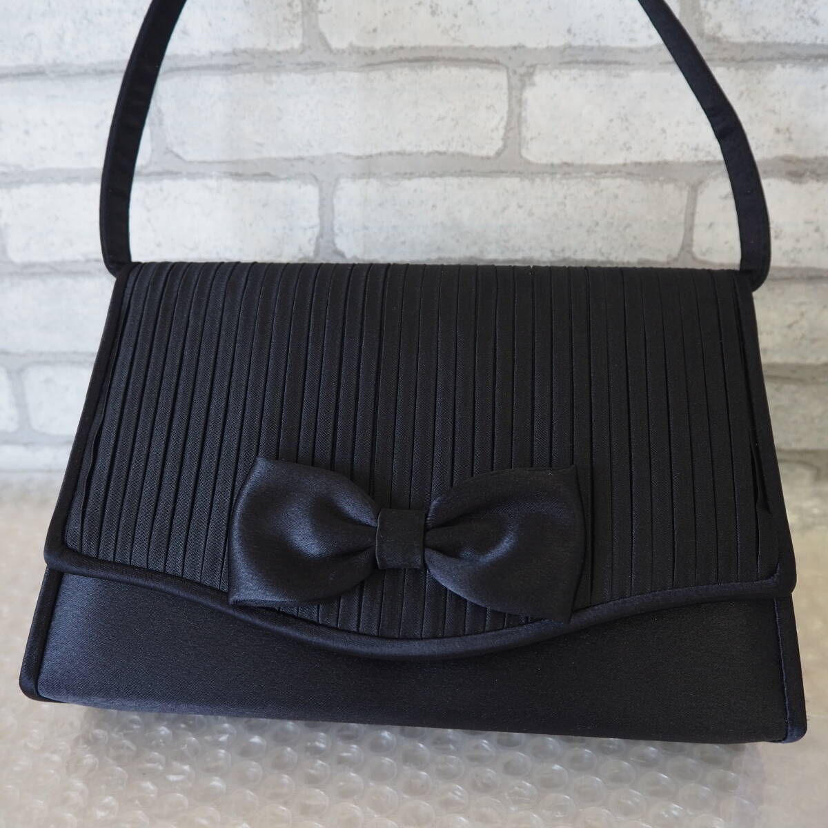 *美品*PETITSOIR/東京ソワール*フェイクパールリボン*ブラックフォーマル*ハンドバッグ*黒*