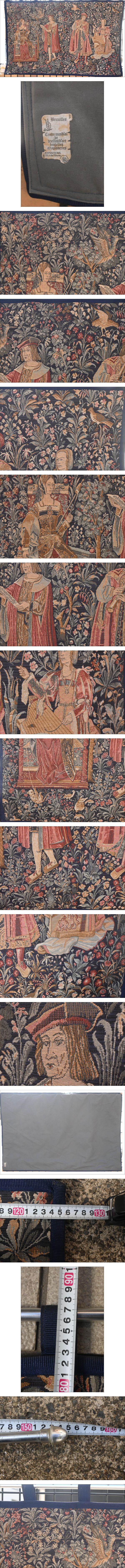 ブリュッセル製 ゴブラン織り タペストリー 中世貴族 ミルフルール 飾り棒付 吊り下げ 刺 織物 壁掛け 壁飾り ベルギー 人物 風景 絵画 | |||