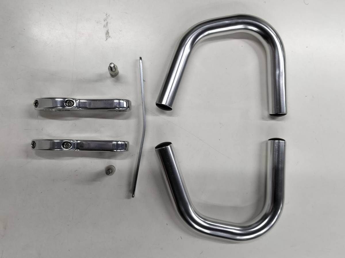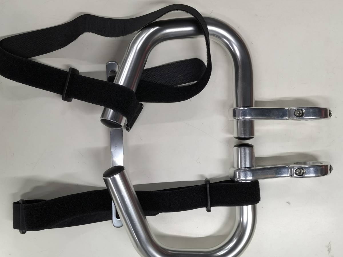 日東ハンドル製のトマリギー 元祖エアロアシストバーのチネリ・スピナッチタイプです1990年代にプロレースでも使用されていましたがUCIに禁止され姿を消しました、DHバーより多くのポジションが取れロングライドに最適です、特にライドで肩コリにより手がシビル方にはポジションの変化により軽減が期待できます。 本来はエアロ・アシストバーですので高速走行のエアロポジションが取れます。このアシストバーに先端にバック固定バンドの通し穴付プレートをネジ止めしロールアップバックホルダーとして使えるバーです。