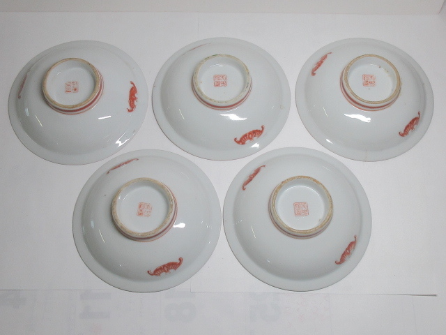~ 【送料無料】朱雀龍蝙蝠文・色絵小鉢5個揃い★幕末明治・焼き物★骨董・レア・ビンテージ・レトロ・アンティーク・コレクション・美品★ ~