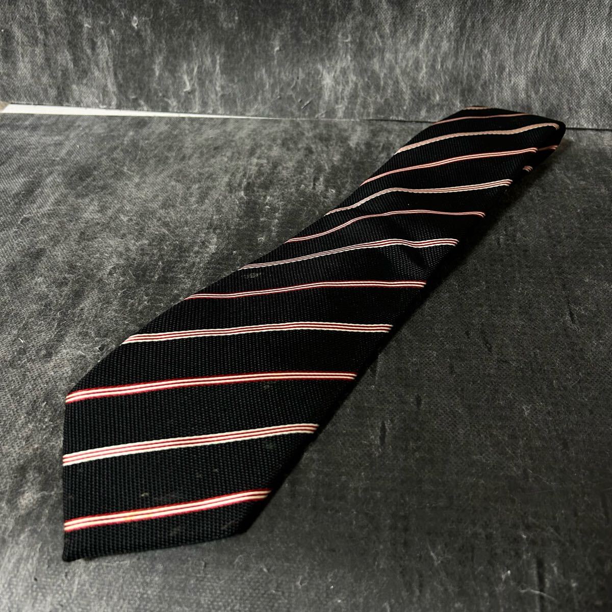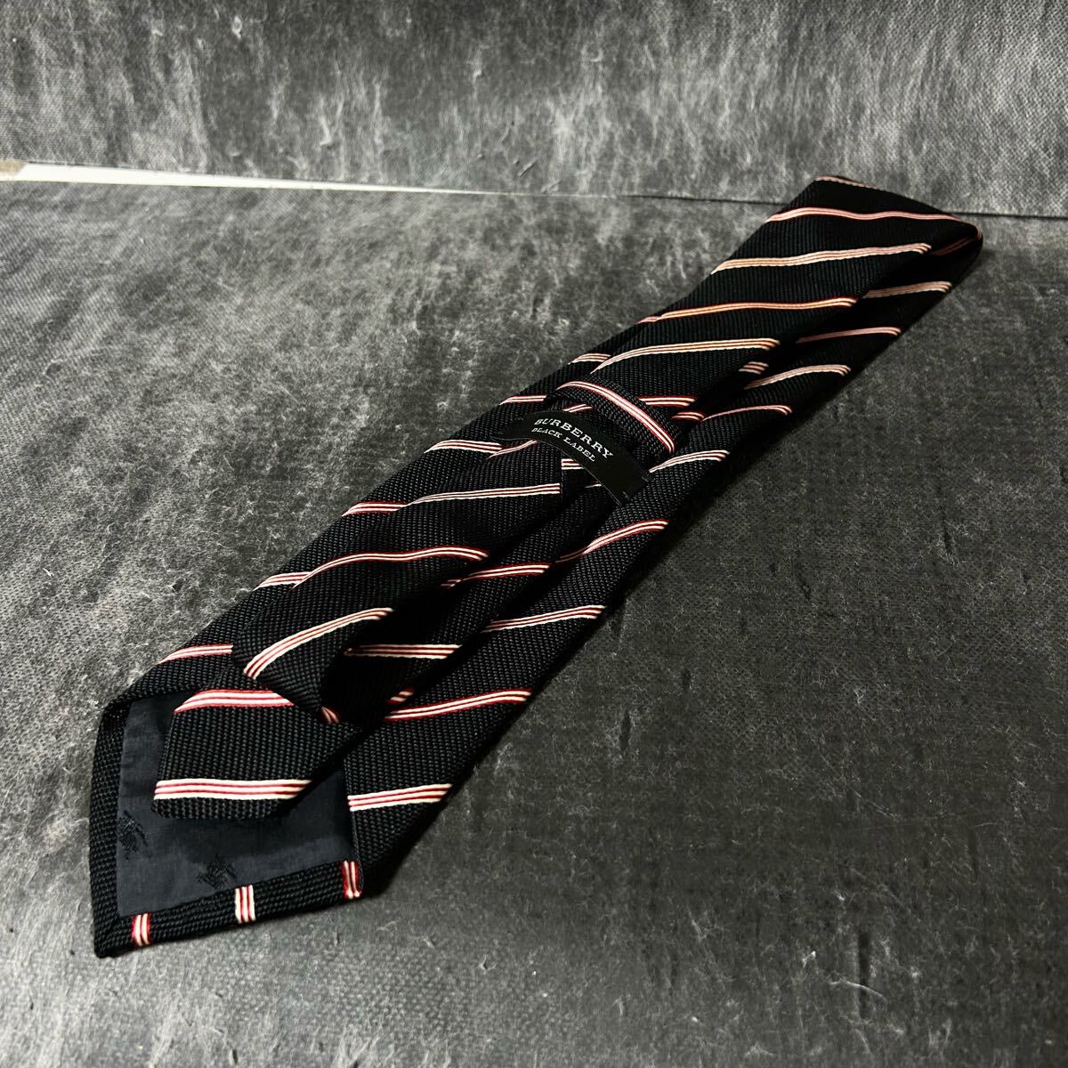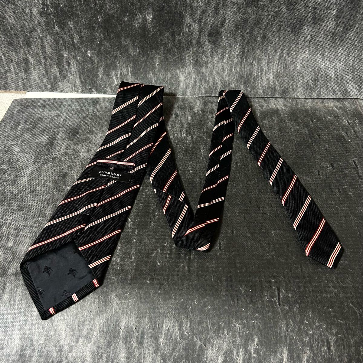 BURBERRY BLACK LABEL バーバリーブラックレーベル  ネクタイ  ストライプ  シルク100 ブラック ビジネス *EJ