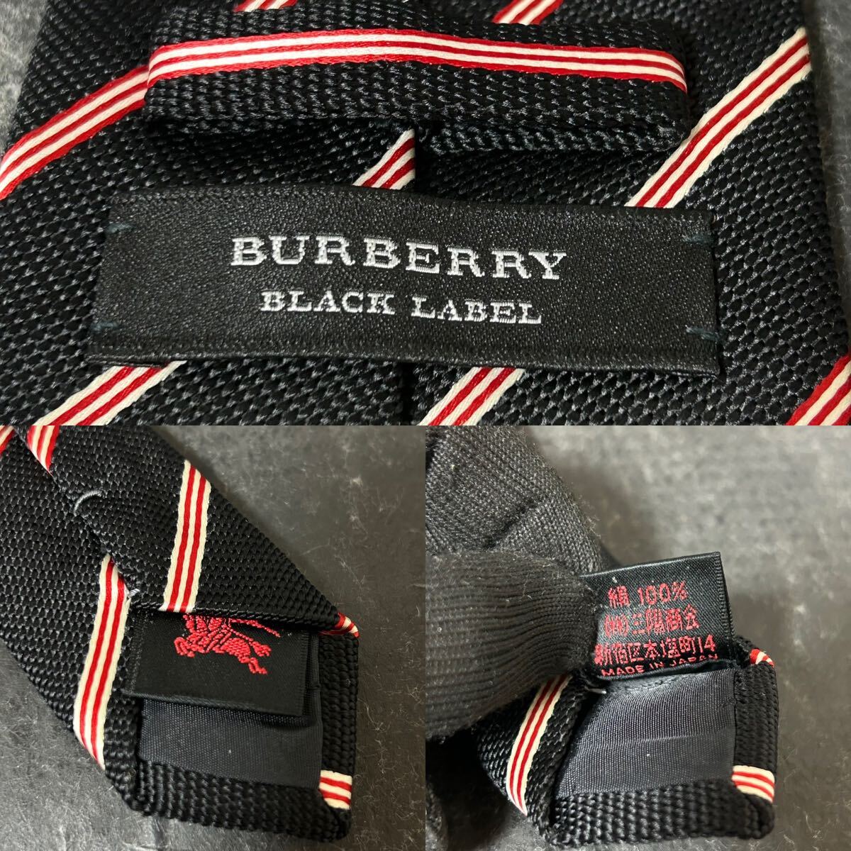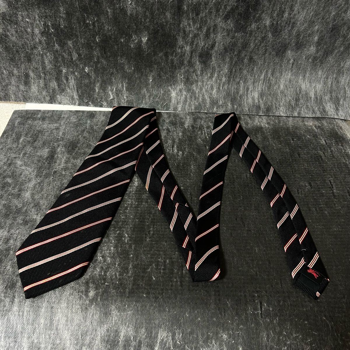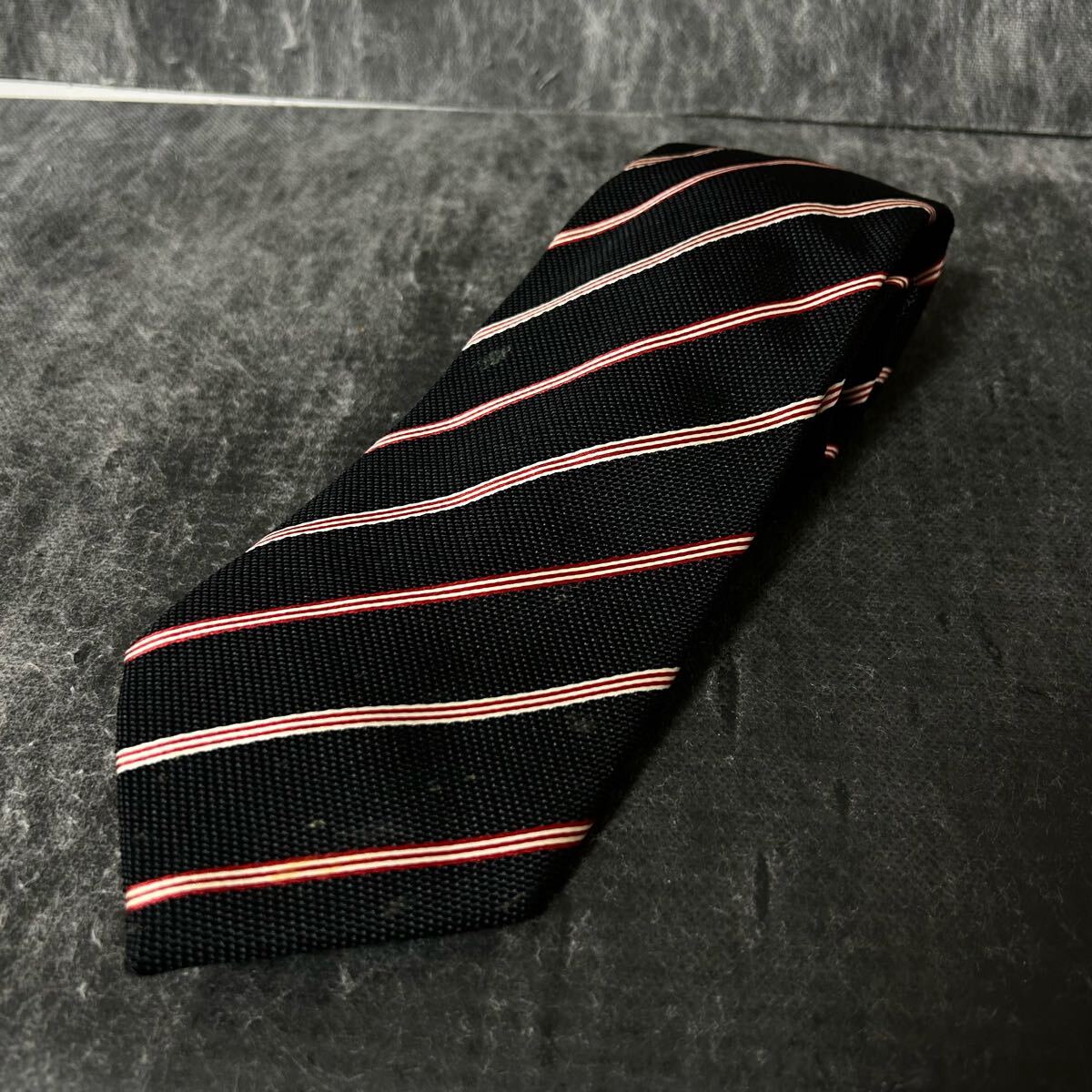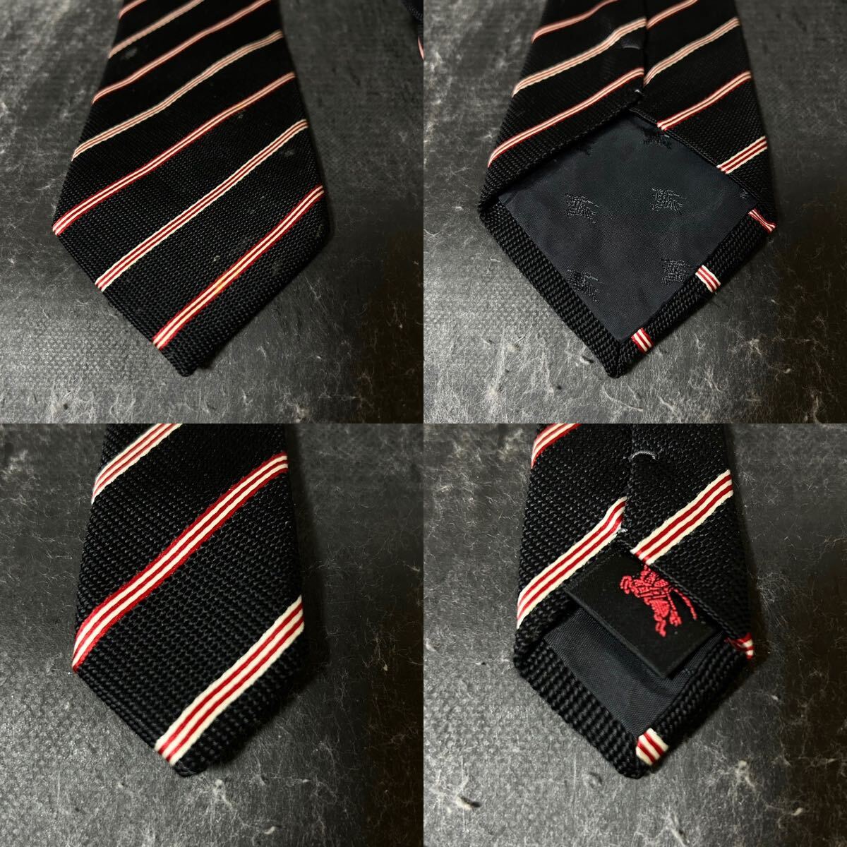 BURBERRY BLACK LABEL バーバリーブラックレーベル  ネクタイ  ストライプ  シルク100 ブラック ビジネス *EJ