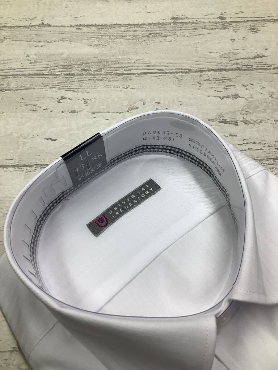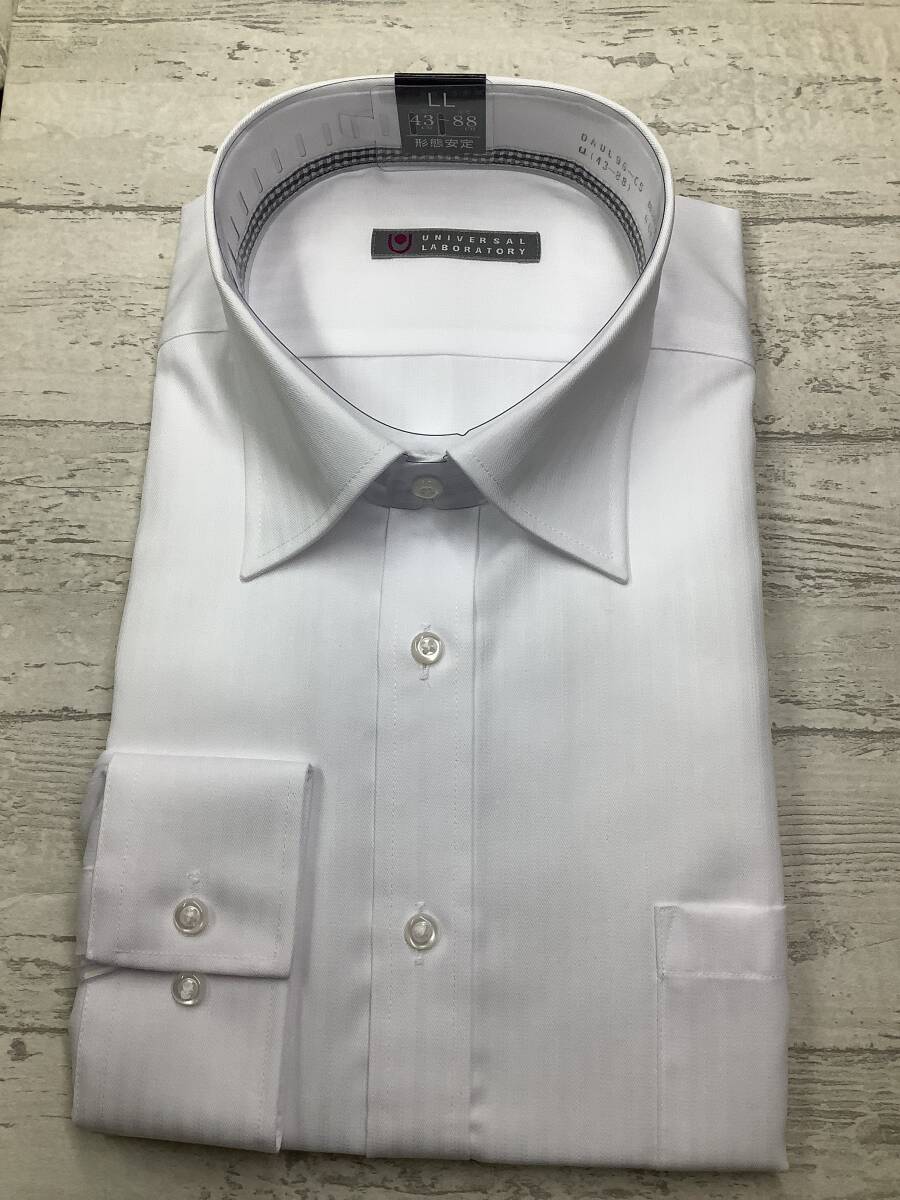 新品未使用★43-88 ★長袖 ★白ストライプドビー柄生地 レギュラーカラードレスシャツ 定価4,990円 形態安定