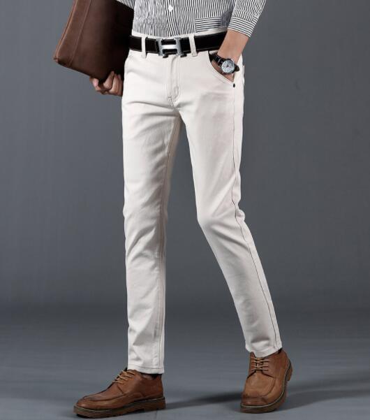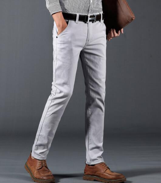 新入荷美脚 スリム メンズ チノパンツ 激伸び イージーパンツ スキニージーンズ テーパードパンツ ライトブルー サイズ34