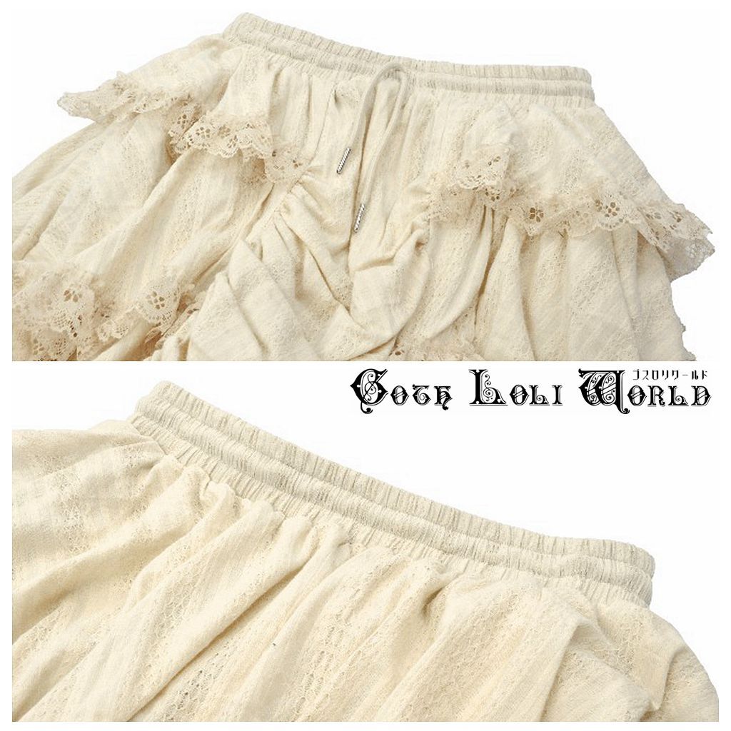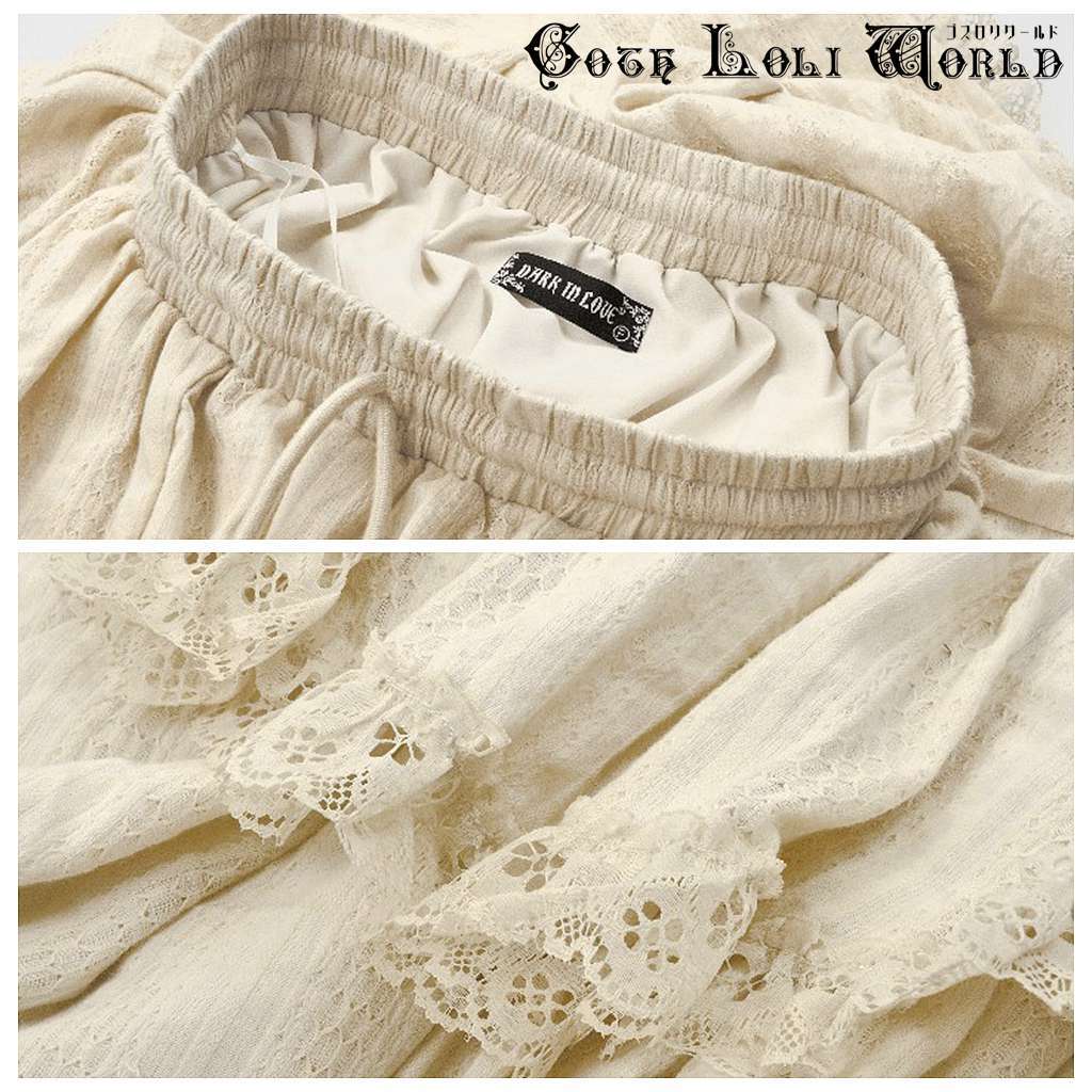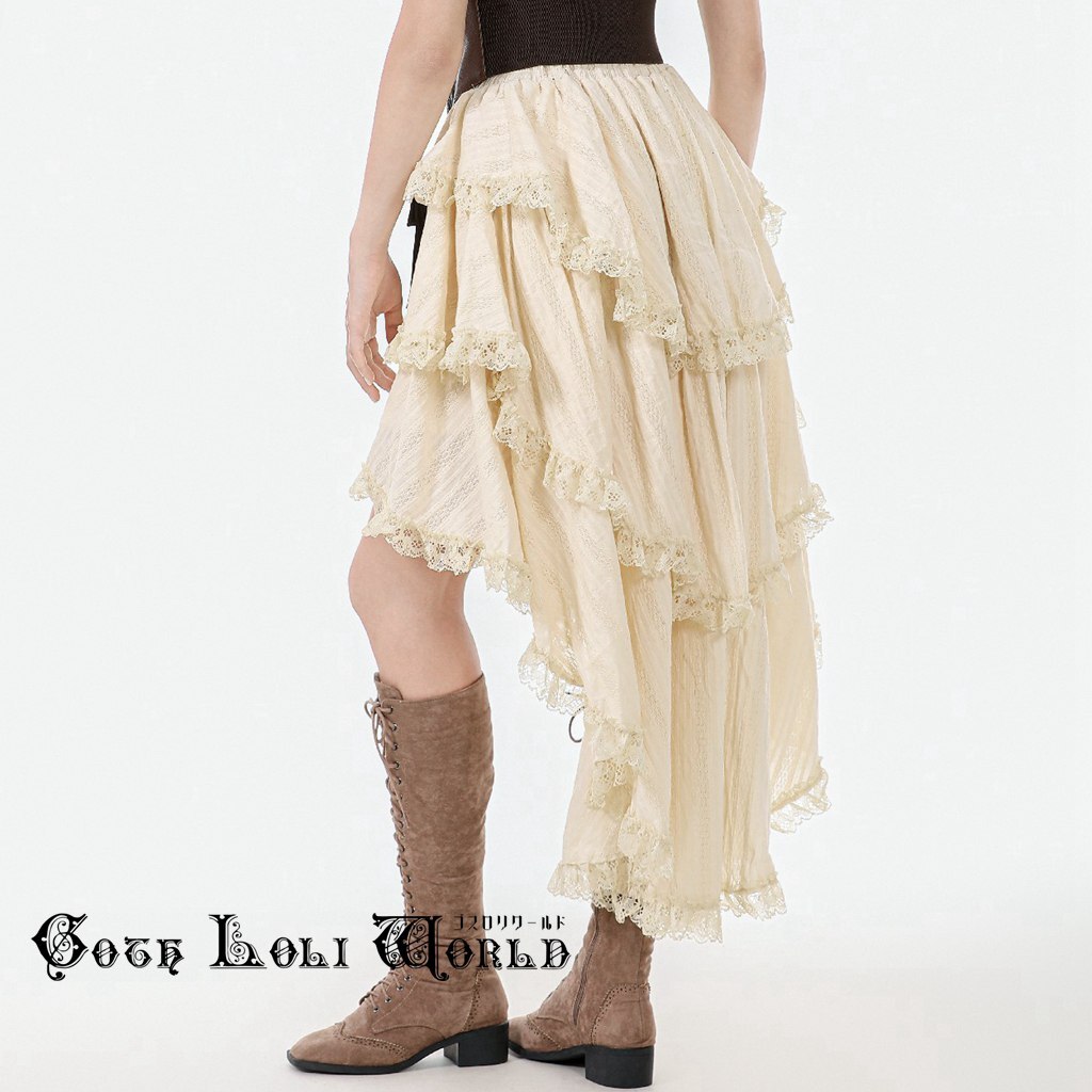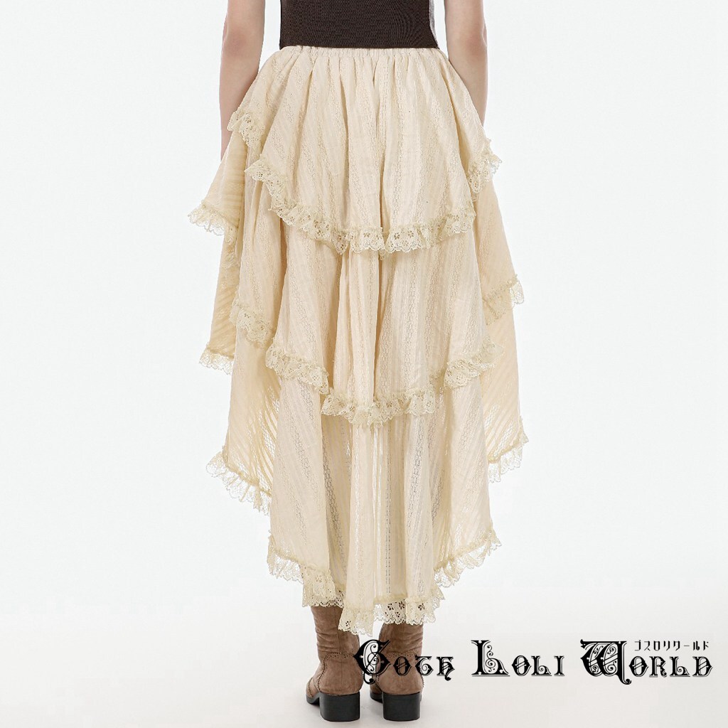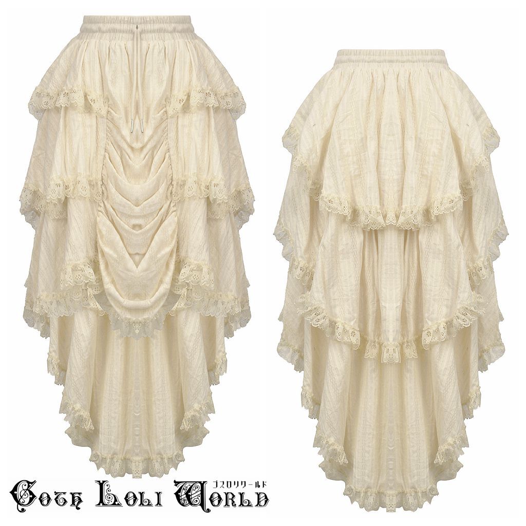 即納 KW394 スチームパンクファッション オフホワイト フリル ロングスカート ベージュ色 ゴシック ゴスロリ ロリィタ ロリータ
