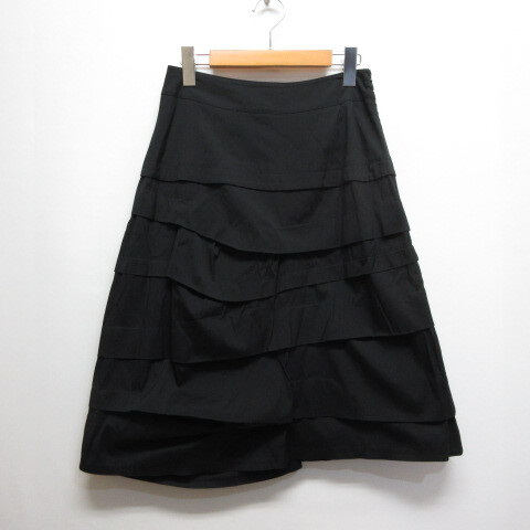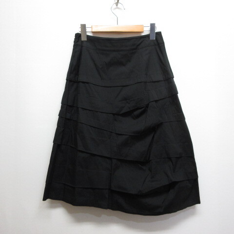 スチェッソ SUTSESO ティアード 台形 スカート 40 黒 ブラック 裏地付き レディース