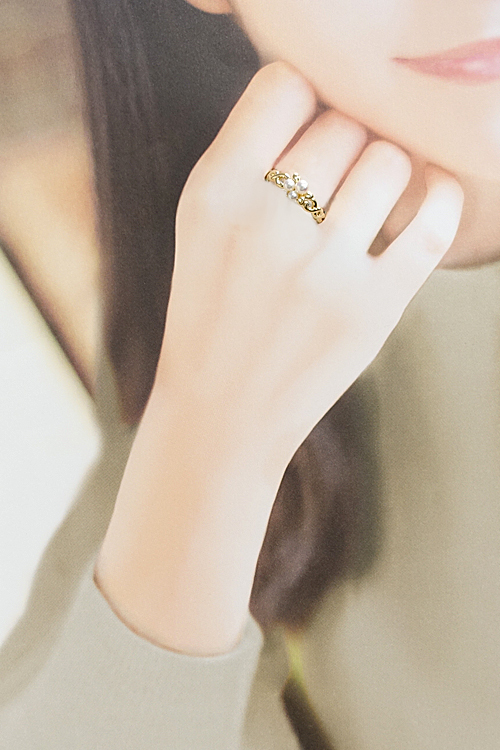 | ■コメント | タサキの、小さな淡水パールにメレダイヤモンドが添えられた可憐なリングです くるくるとツイストしたボタニカルモチーフのアームが可愛らしくも上品なお品です |