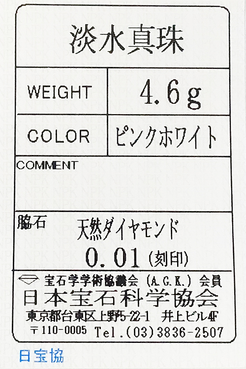 | ■ダイヤモンドの重量 | 0.01ct |