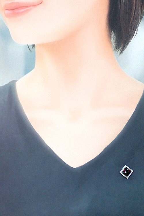 コメントセイコー・ニナリッチの、落ち着いた色合いが印象的なアルマンディンガーネットのピンブローチです。スクエアモチーフにダイヤモンドが縁どられており、スマートでクラシカルな雰囲気漂うお品です。