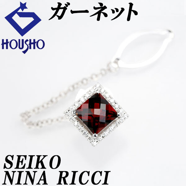 ニナリッチ NINARICCI セイコー ガーネット ダイヤモンド K18WG K14WG ピンブローチ 四角 スクエア 宝正 901584