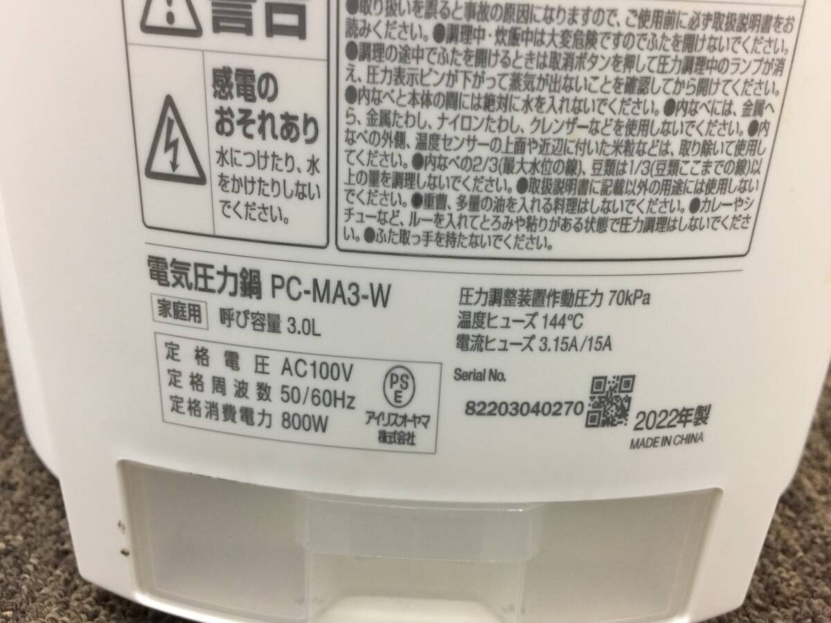 ★★美品 アイリスオーヤマ 電気圧力鍋 PC-MA3-W 2022年製★★ | ||||||||||||||||||||||||||||||||||||