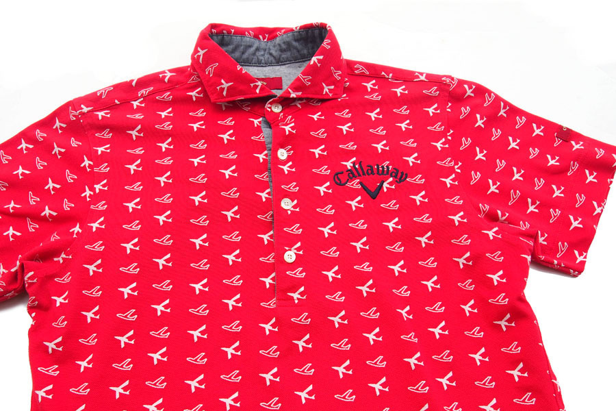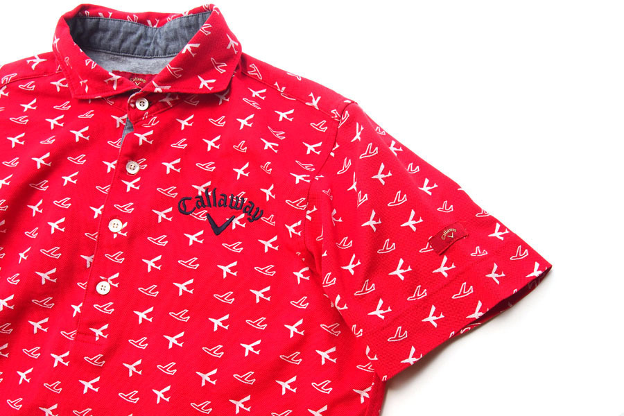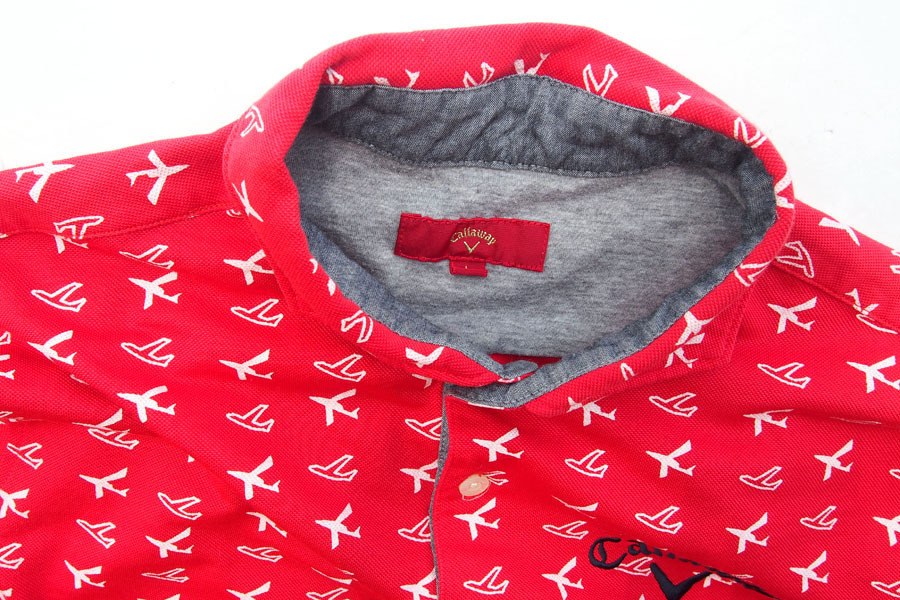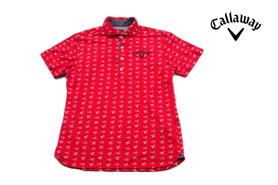 送料無料★【中古】キャロウェイ|Callaway|レッドレーベル|飛行機柄半袖ポロシャツ|メンズゴルフウェア|L