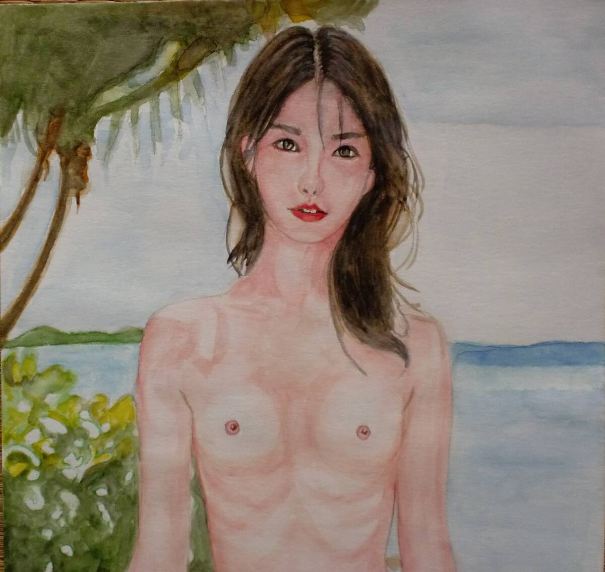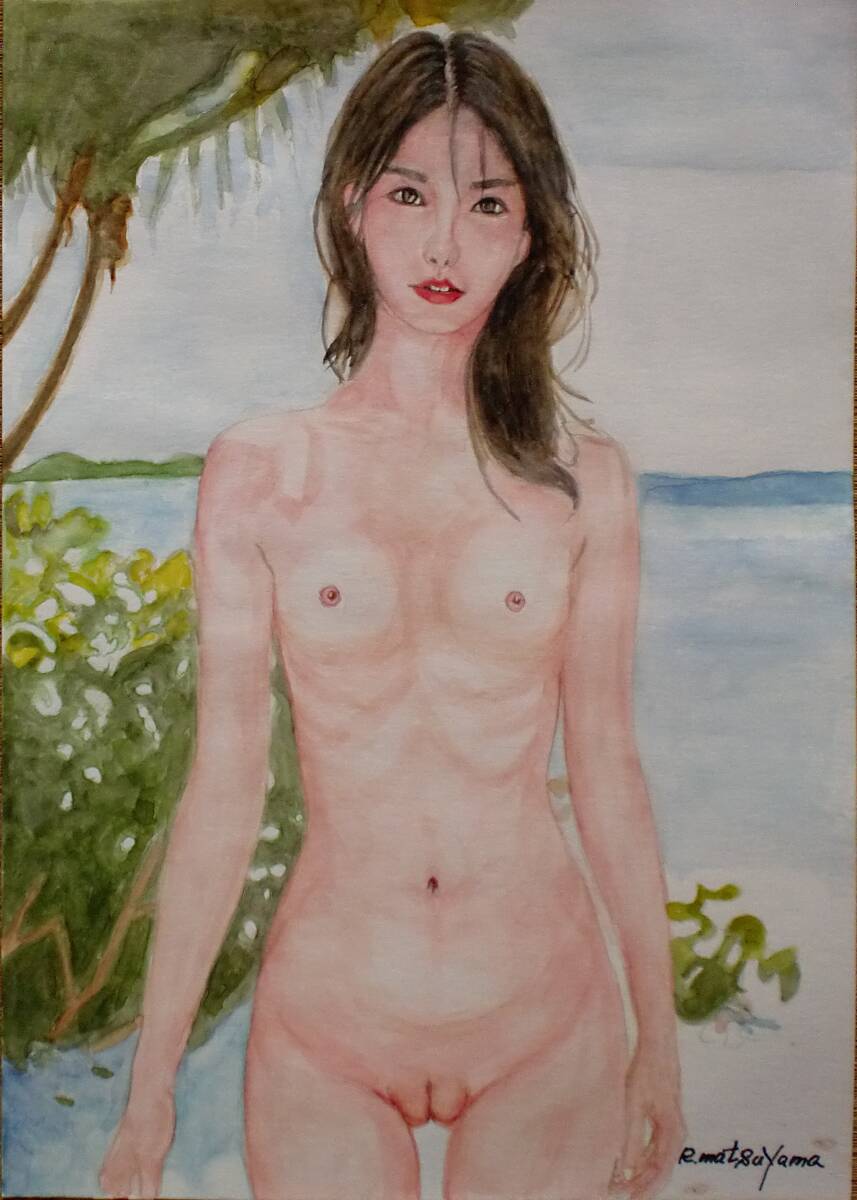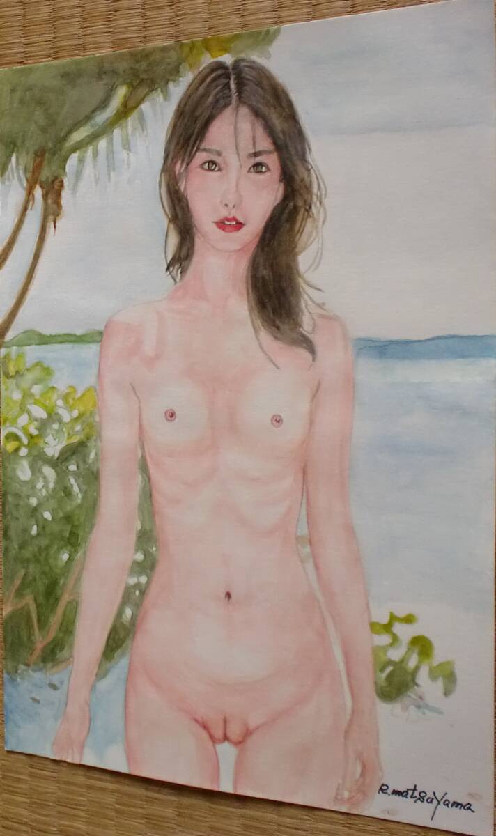 上質顔料水彩絵の具(主にウィンザーニュートン)を使用して、美人さんを描きました。