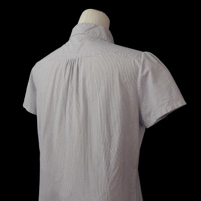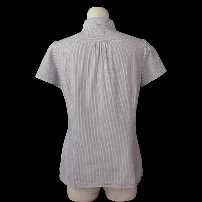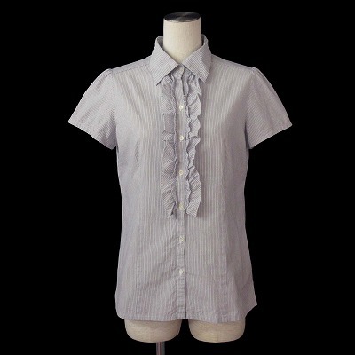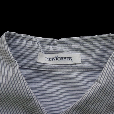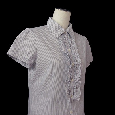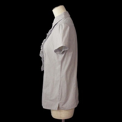 ニューヨーカー NEWYORKER ブラウス シャツ ピンストライプ フリル 半袖 コットン 75-11 ホワイト ブルー 白青 レディース