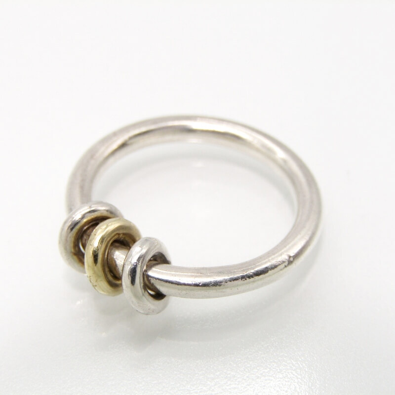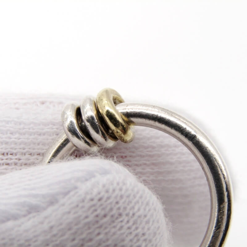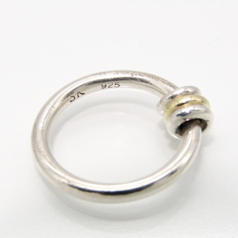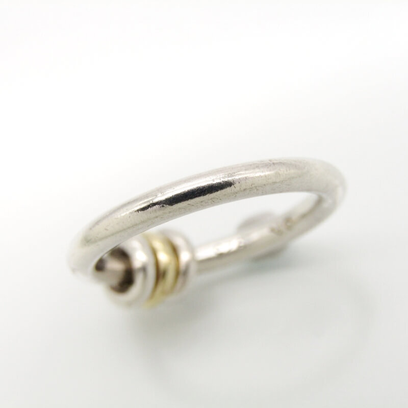 SIZE | 号数:約 9号 縦幅:約 2.1mm 重さ:約 3.49g 内周約15.7mm(おおよそ9号/リング部のみでの計測) ※リングゲージでの計測値はチャーム部を含む為4.5号となりますが、リング部の内周のみでは約9号となり、実際は9号以下でのサイズであればご着用可能でございます。 |