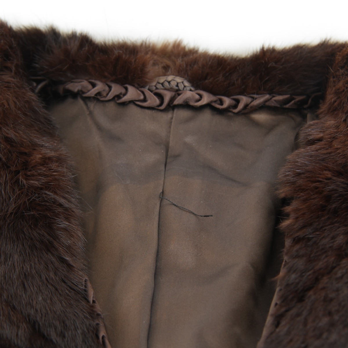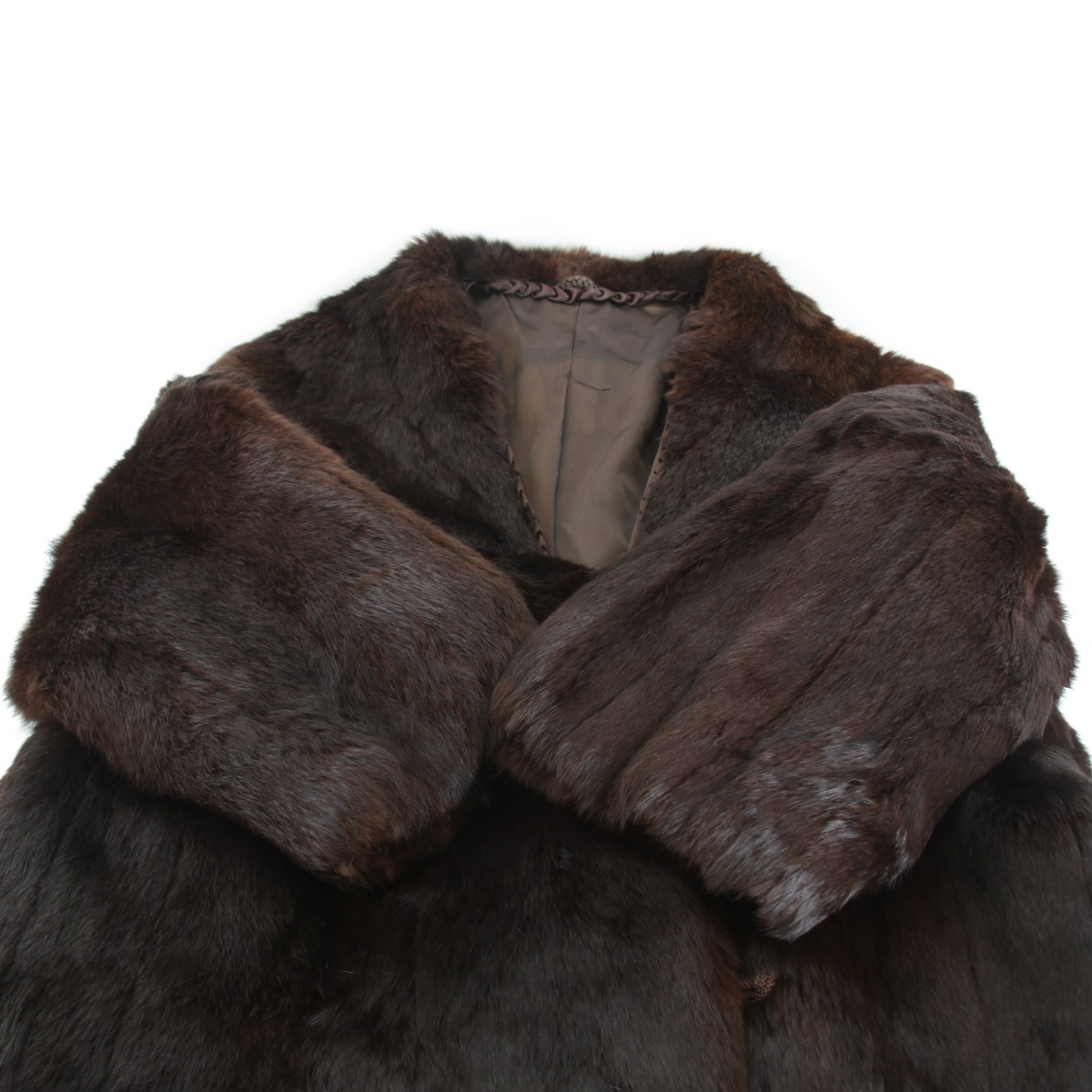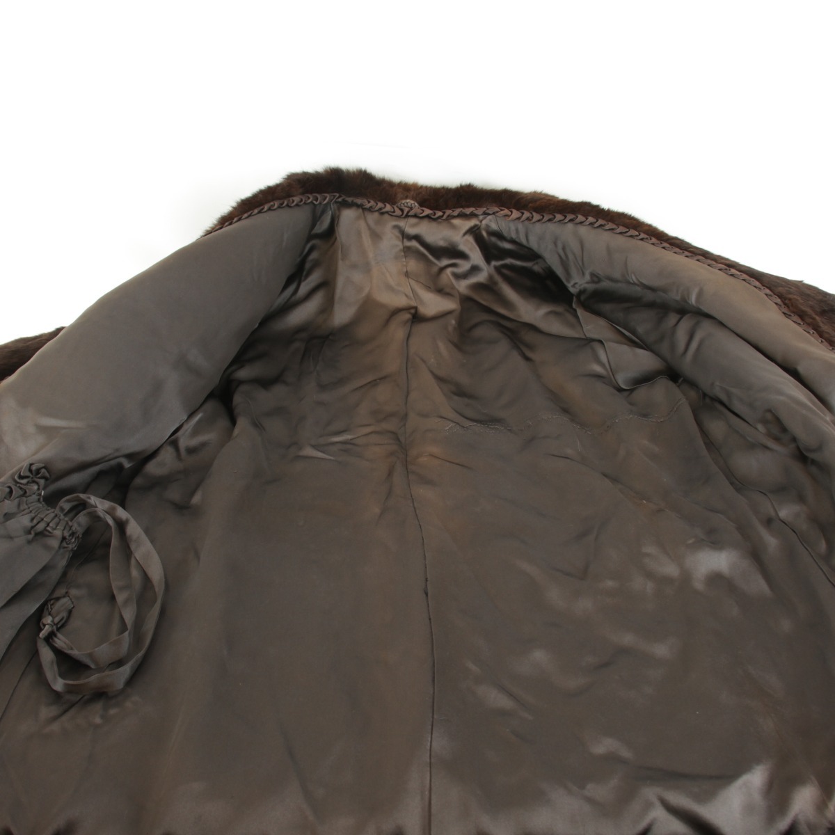 B | 表面:糸のほつれ 内側:キズ、汚れ、変色、染み、糸のほつれ におい:古い匂い 状態コメント:被毛は柔らかく艶がありますが、少々乱れのある部分もございます。表に糸のほつれがございます。裏地にキズ、糸のほつれ、汚れ、シミ、変色している部分がございます。保存臭ございますがまだまだご使用いただけます。着丈が長く襟も大きいので重いですがゴージャスなお品です。 |