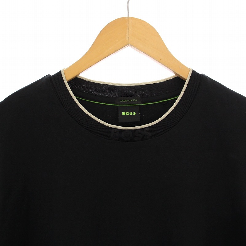 ヒューゴボス HUGO BOSS LUXURY COTTON Tシャツ カットソー 半袖 クルーネック L 黒 /BM メンズ