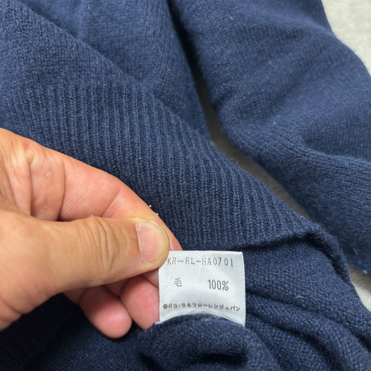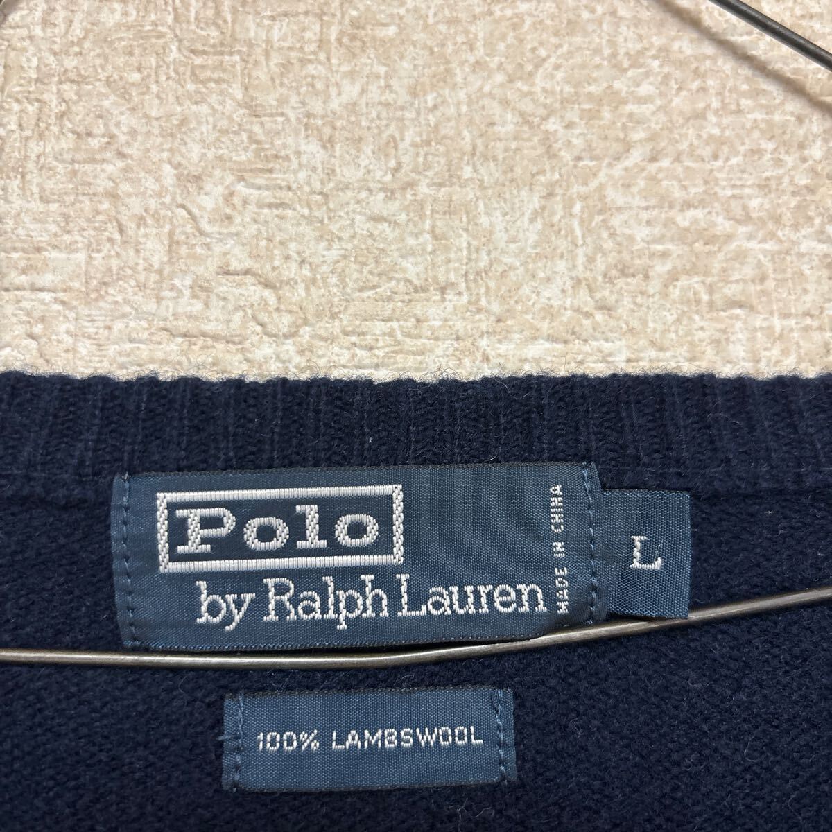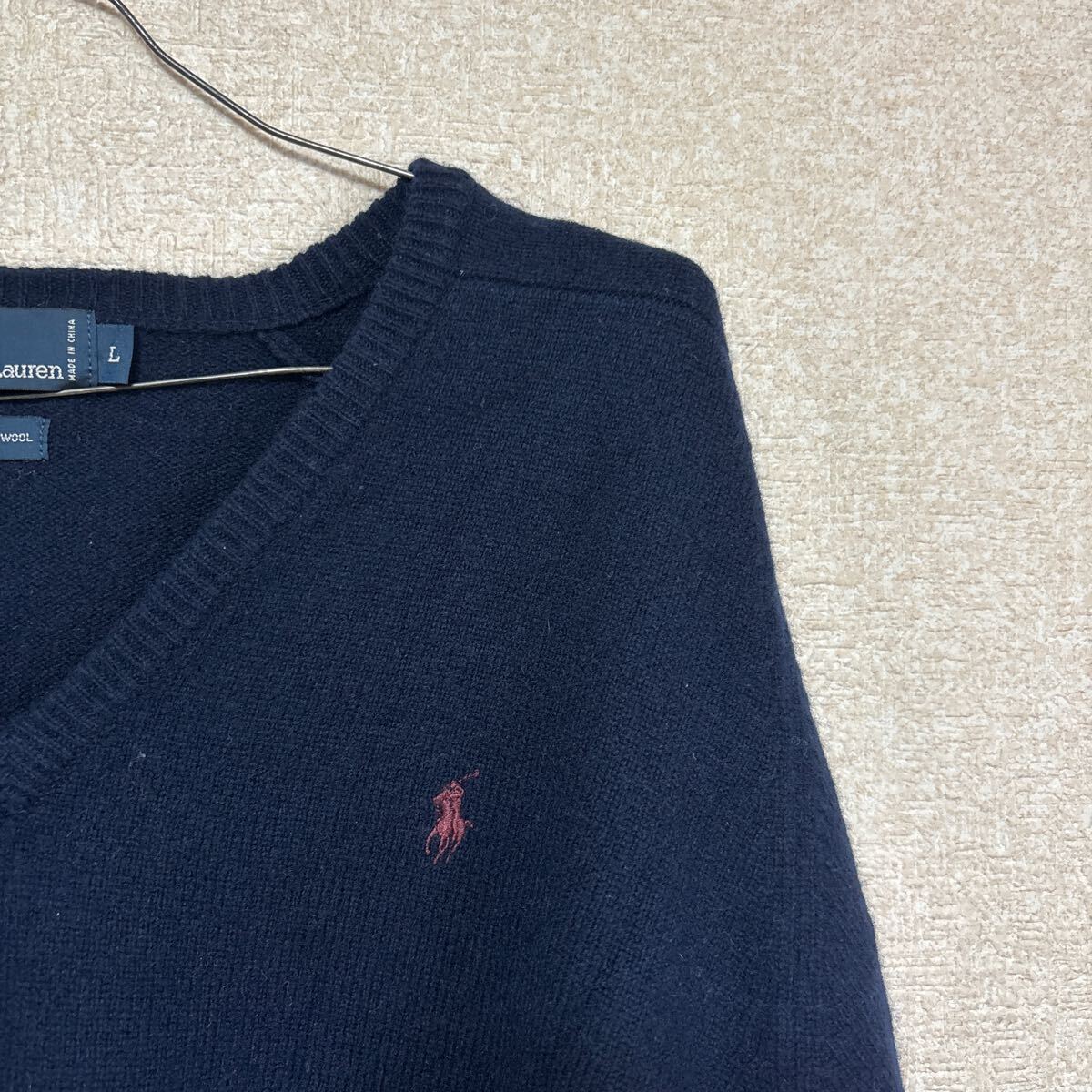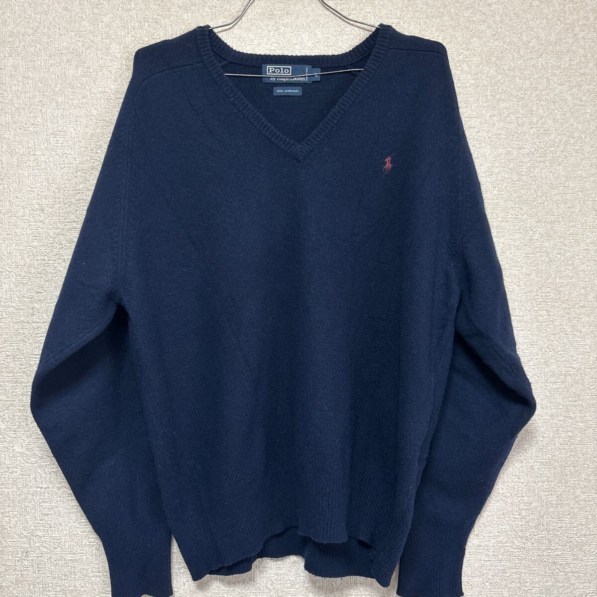 美品 90s polo RALPH LAUREN ラルフローレン Vネック コットンニット ユニセックス ネイビー 100% LAMBSWOOL メンズ Lサイズです。