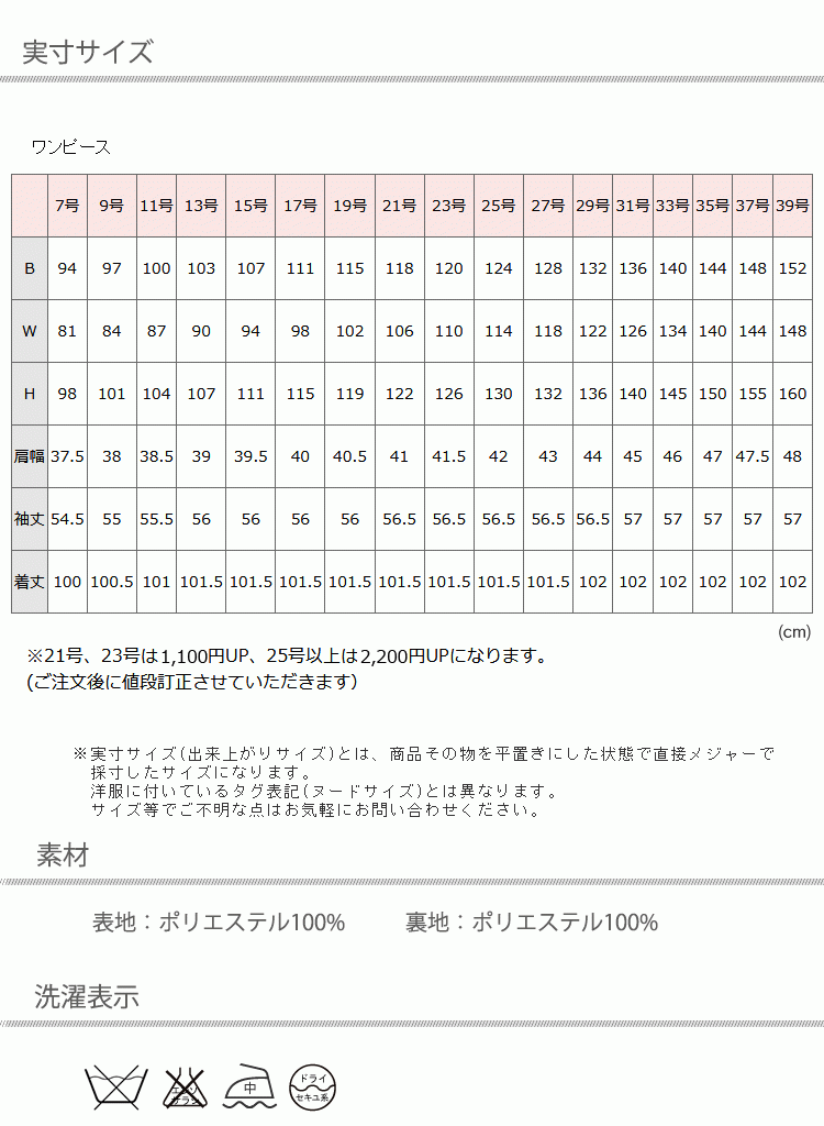 | 着丈 | 100 | 100.5 | 101 | 101.5 | 101.5 | 101.5 | 101.5 | 101.5 |