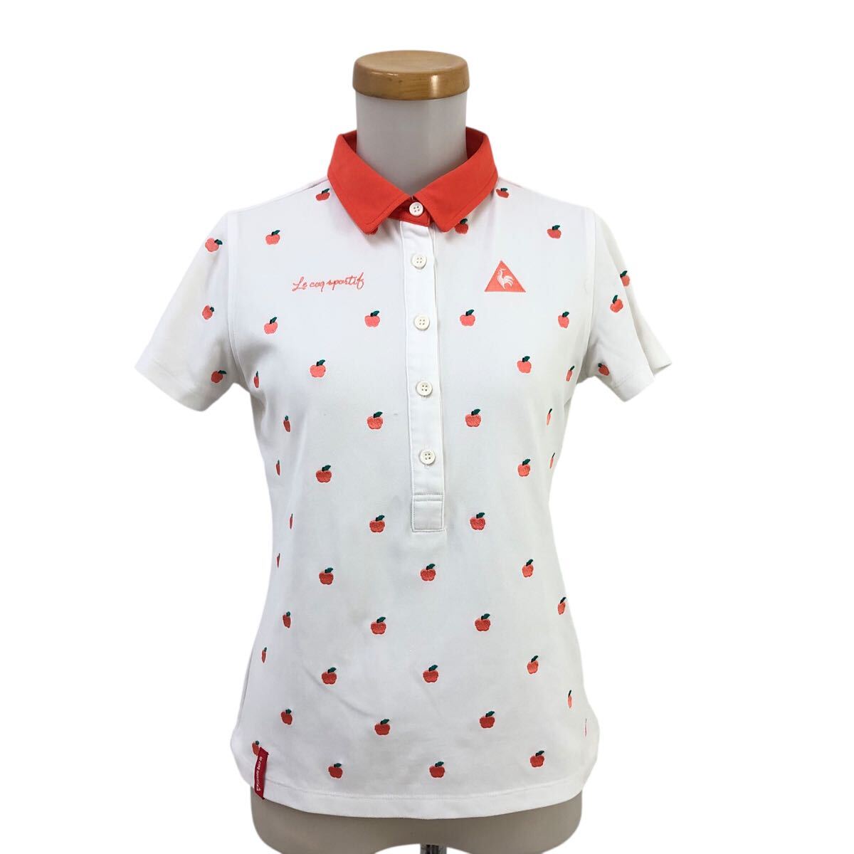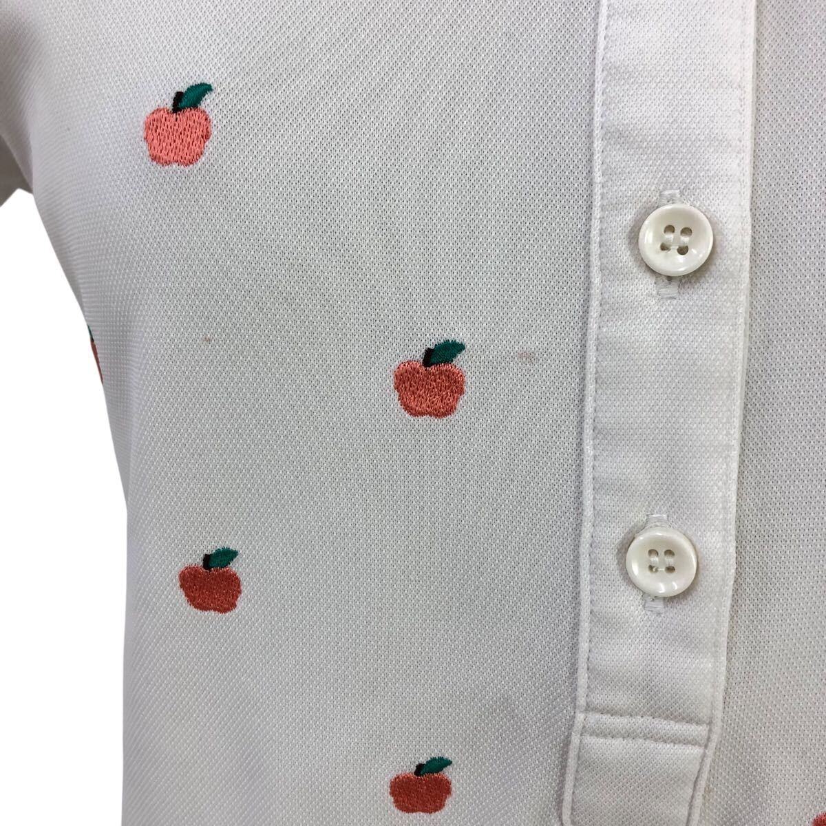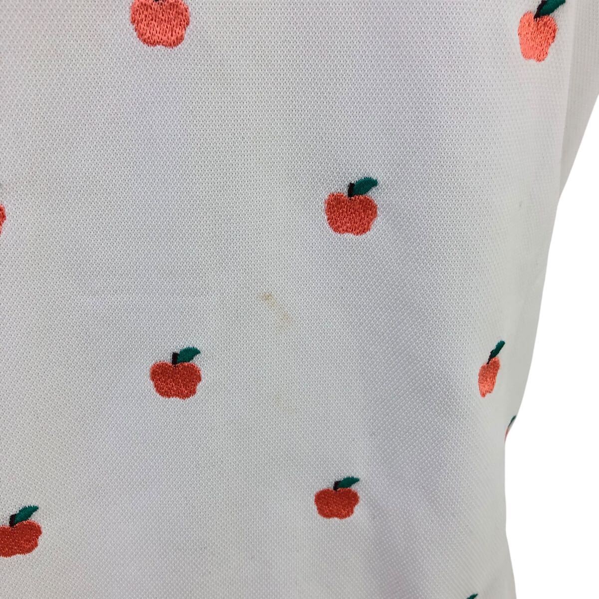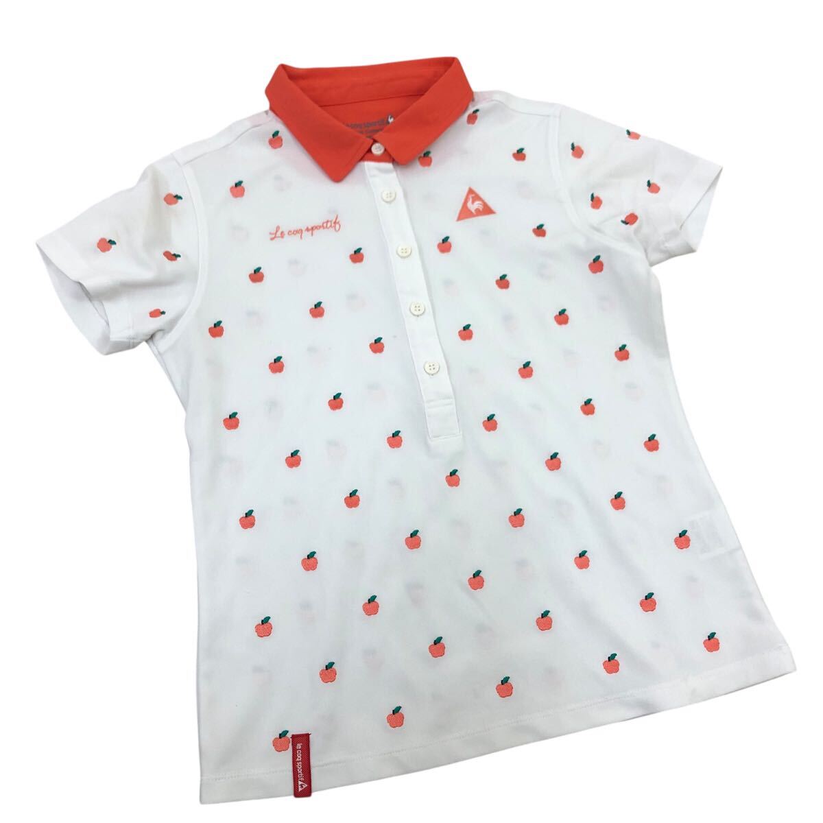 Nm314-47 le coq sportif GOLF ルコック ゴルフ りんご 刺繍 半袖 ポロシャツ シャツ トップス カットソー ゴルフウェア ホワイト M