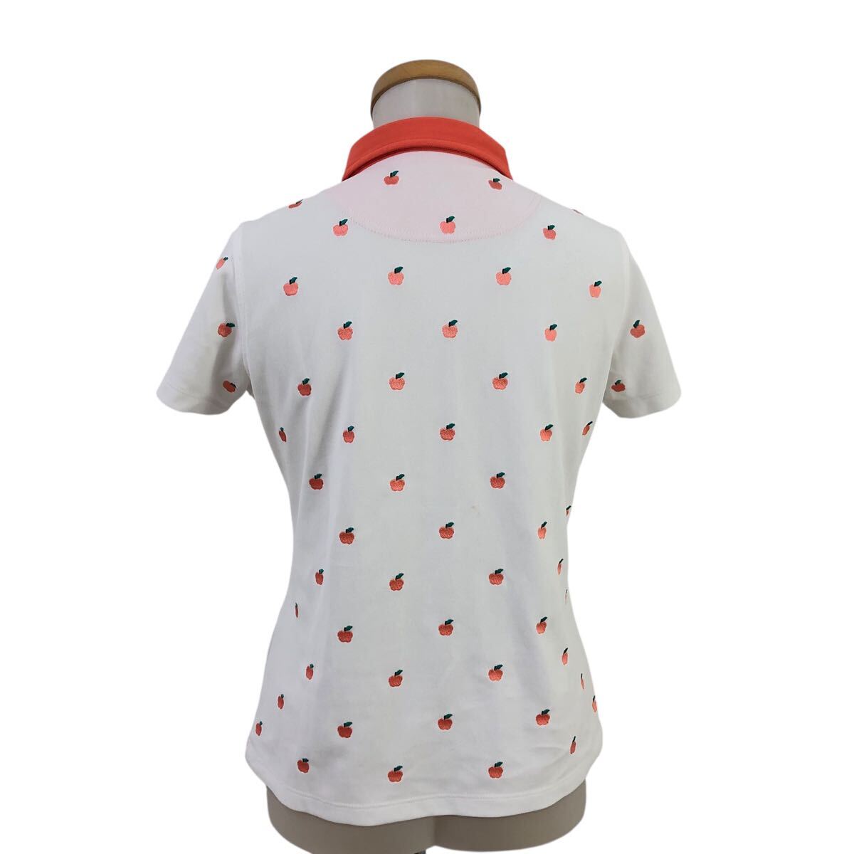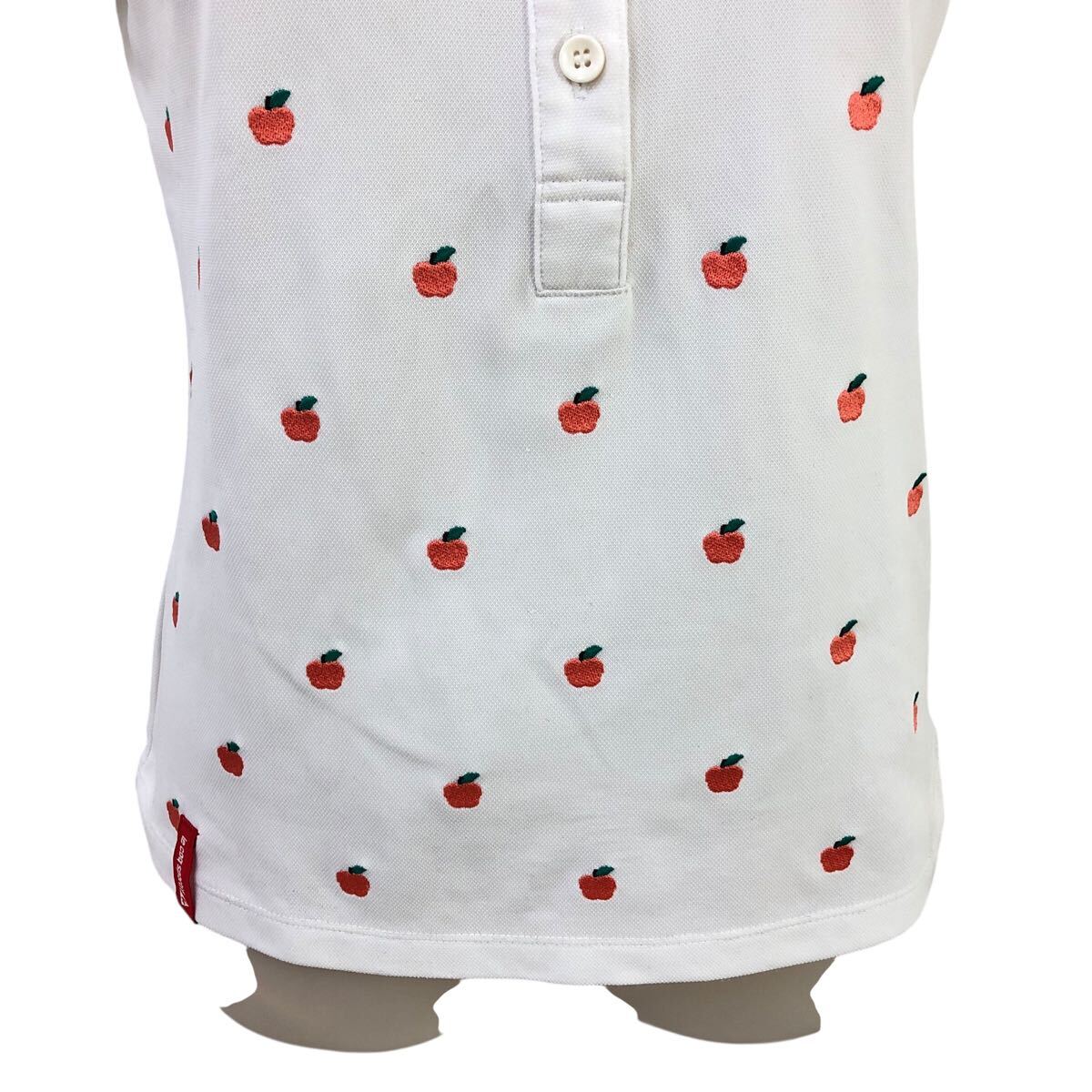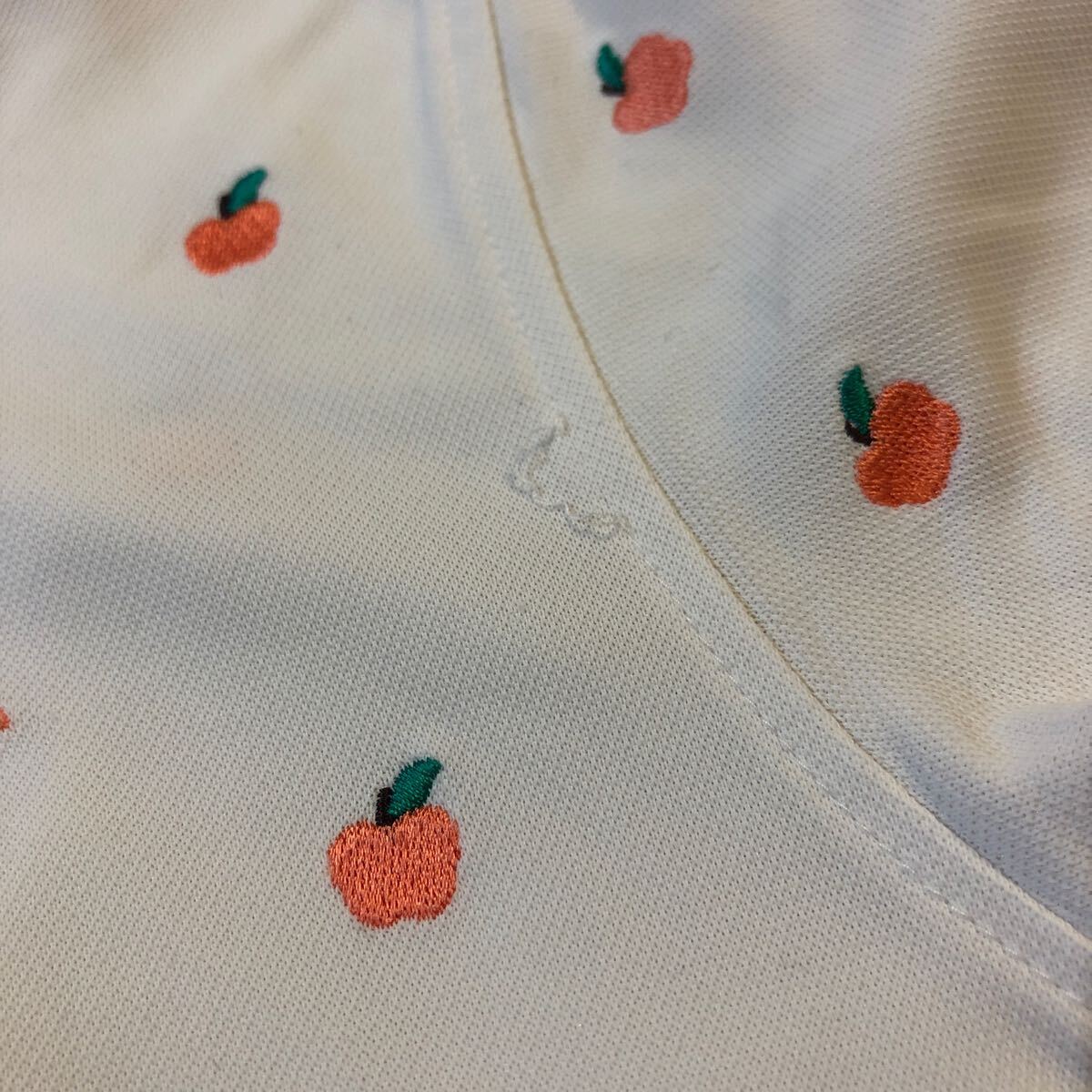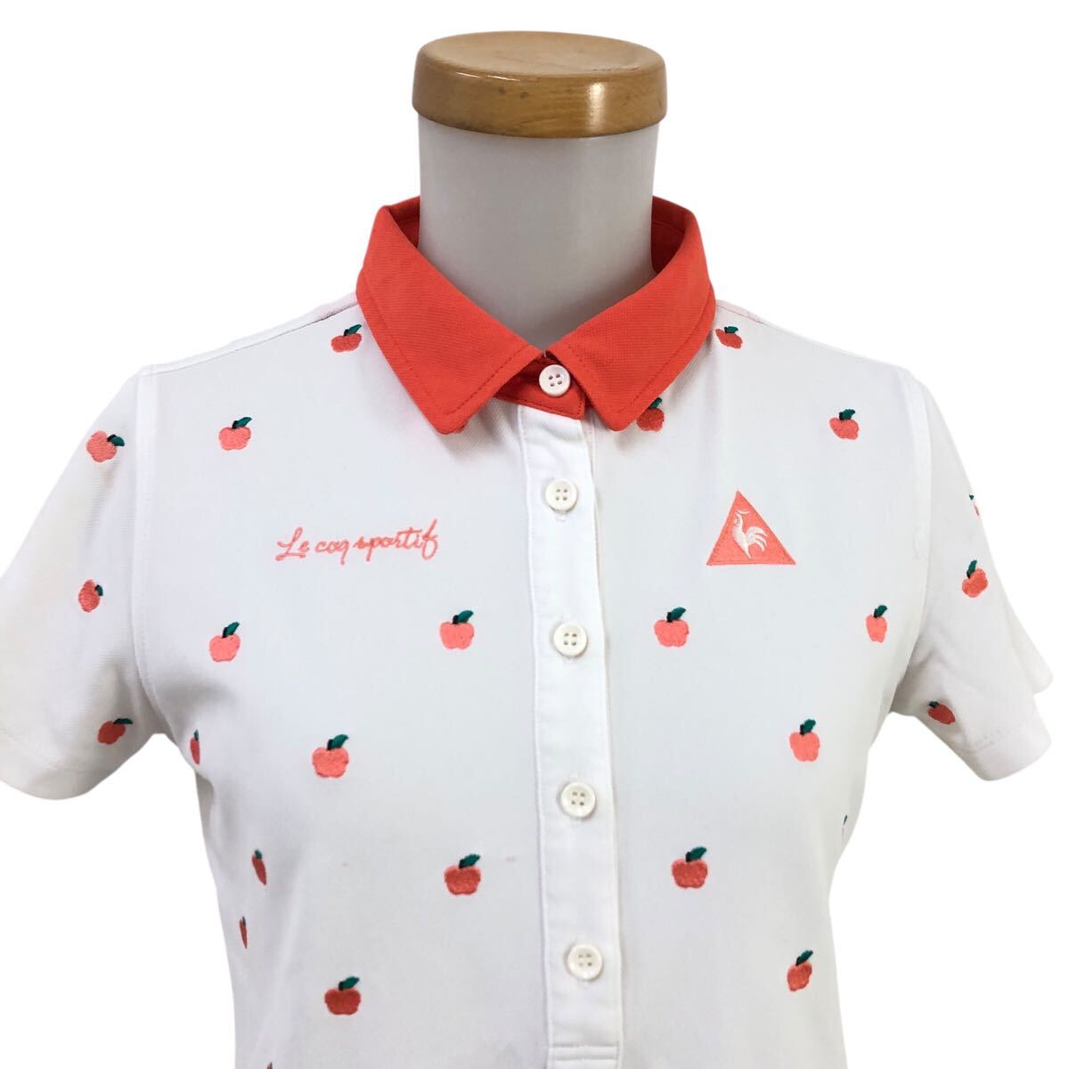 Nm314-47 le coq sportif GOLF ルコック ゴルフ りんご 刺繍 半袖 ポロシャツ シャツ トップス カットソー ゴルフウェア ホワイト M