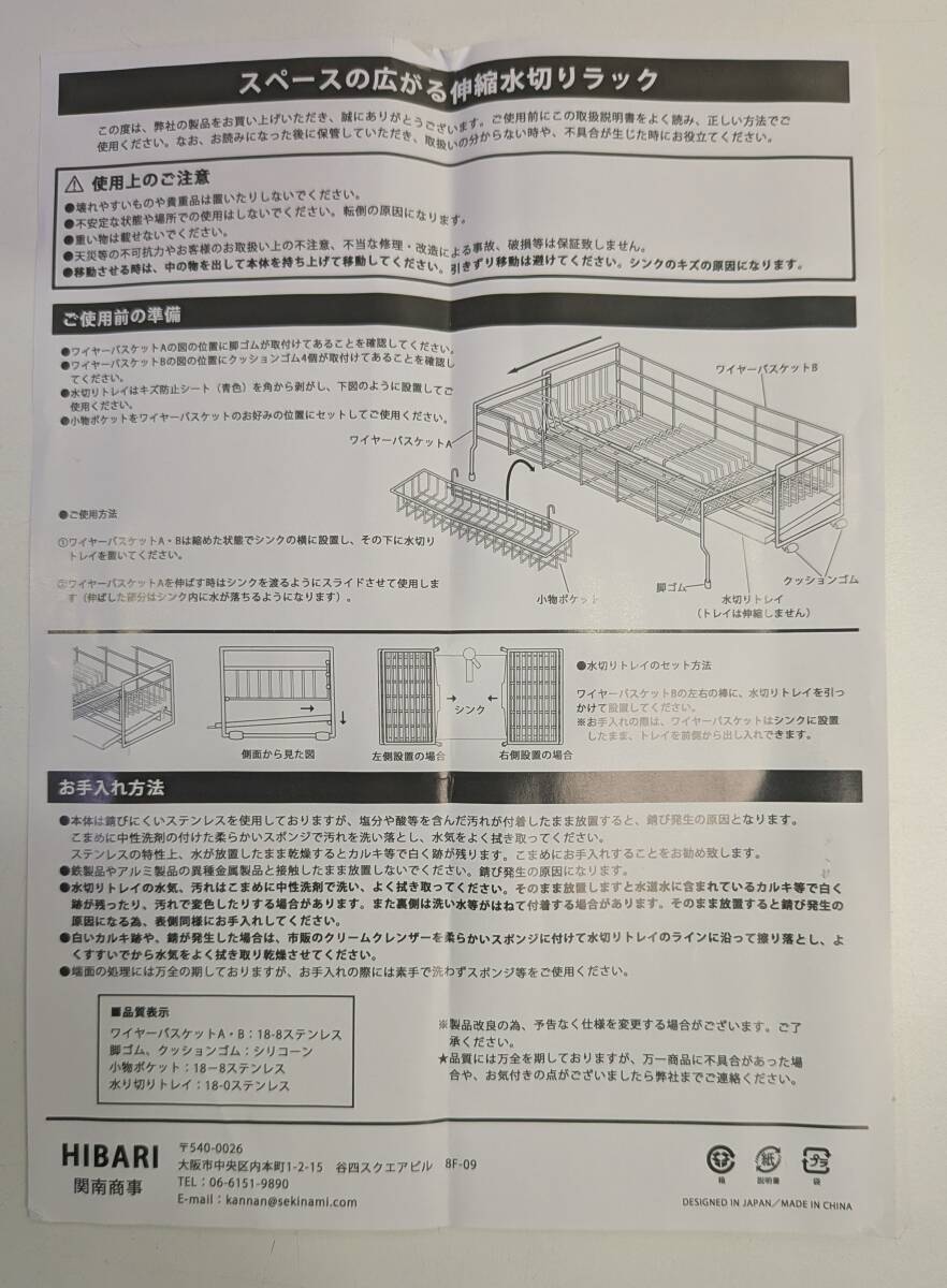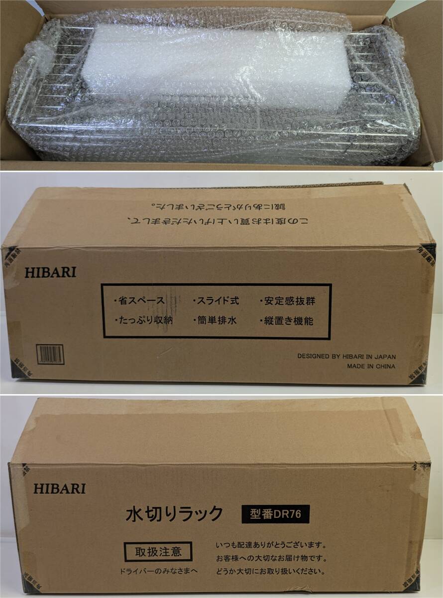 ▽□[未使用品]HIBARI 食器 水切りラック DR76 シンクサイド スライド 調整可能 ステンレス 箸置き付き