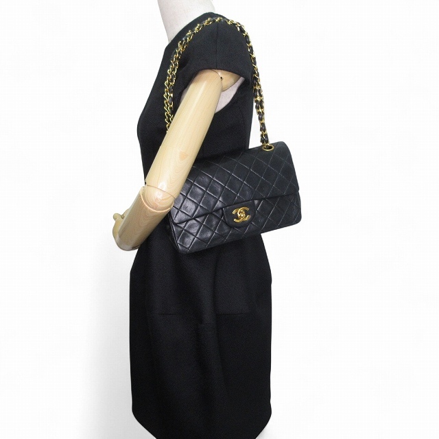 シャネル CHANEL マトラッセ ダブルフラップ 1番台 チェーンショルダーバッグ ブラック レディース