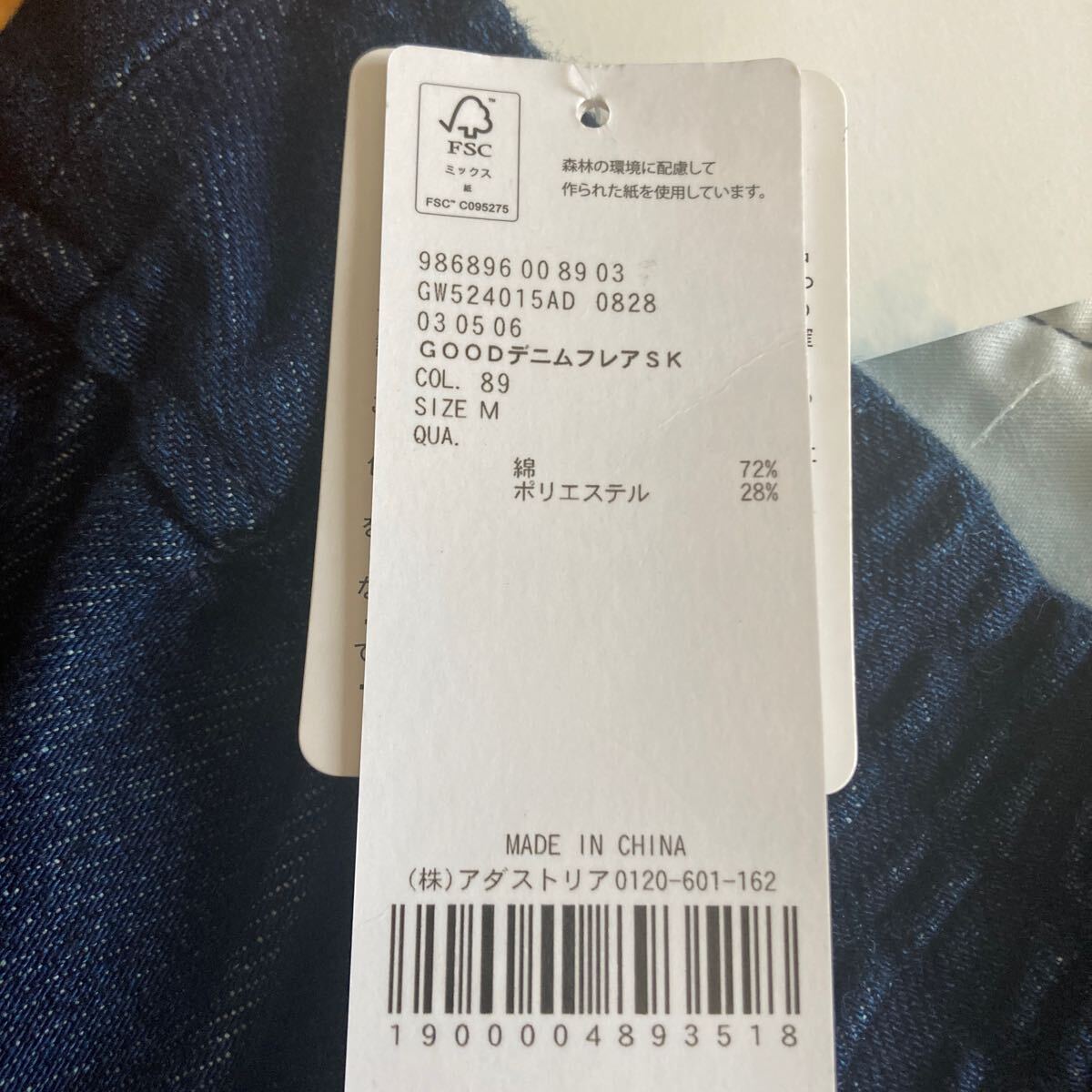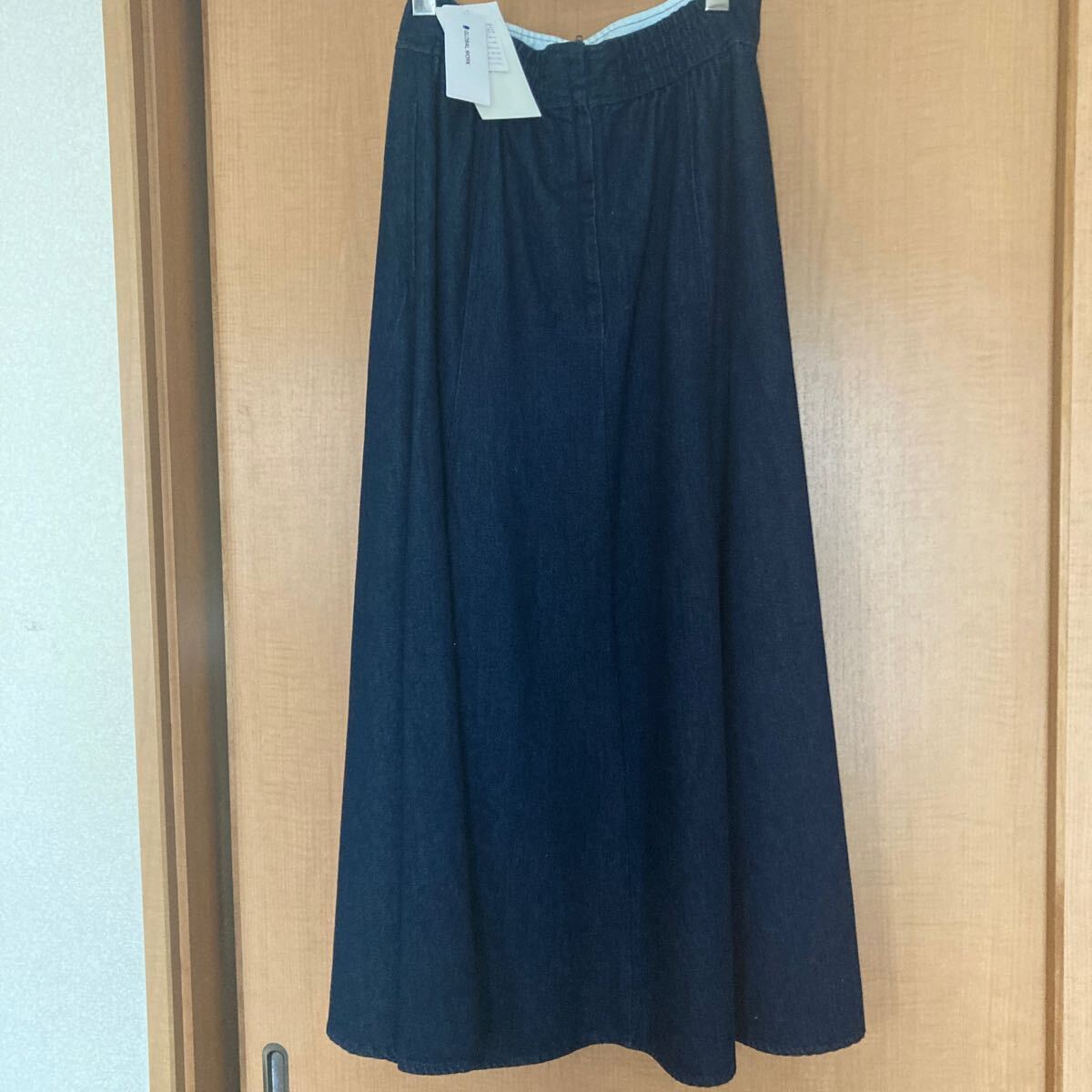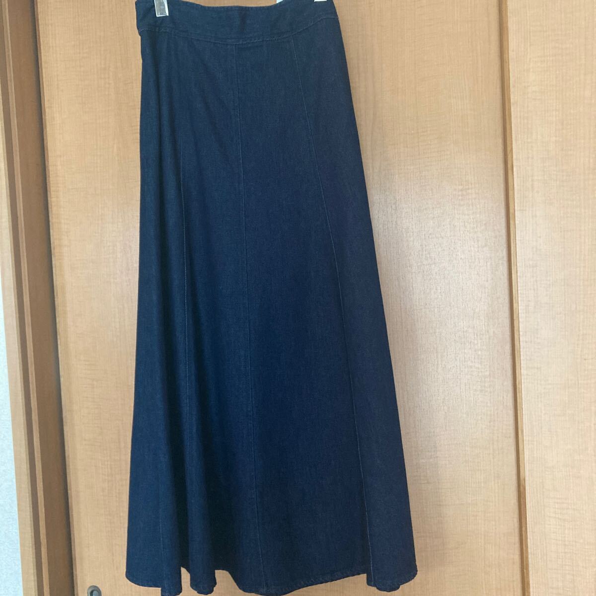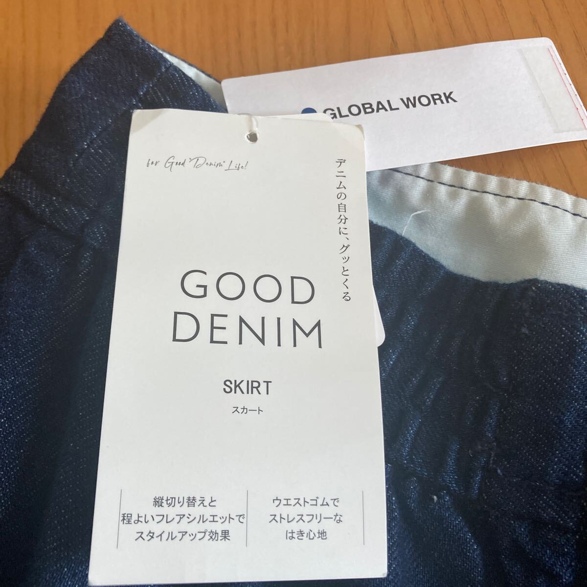GLOBAL WORKで購入した新品タグ付き、定価¥5940のデニムフレアスカート、Mサイズになります。