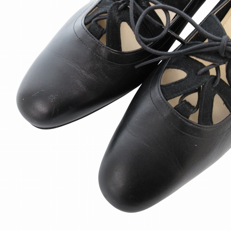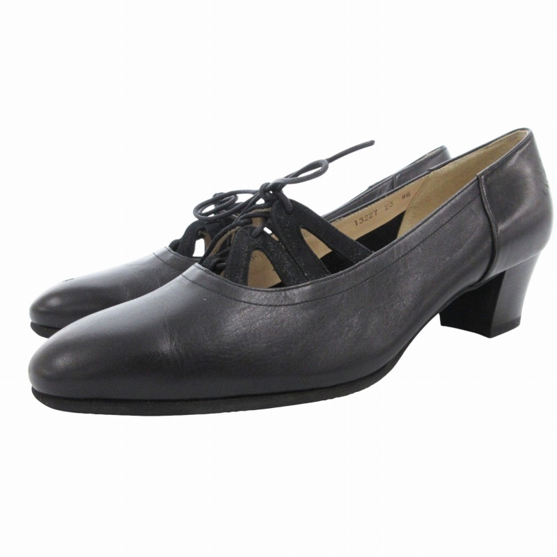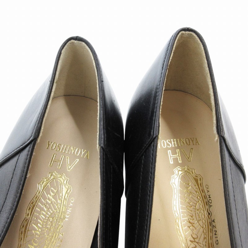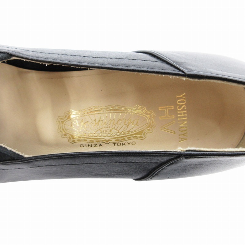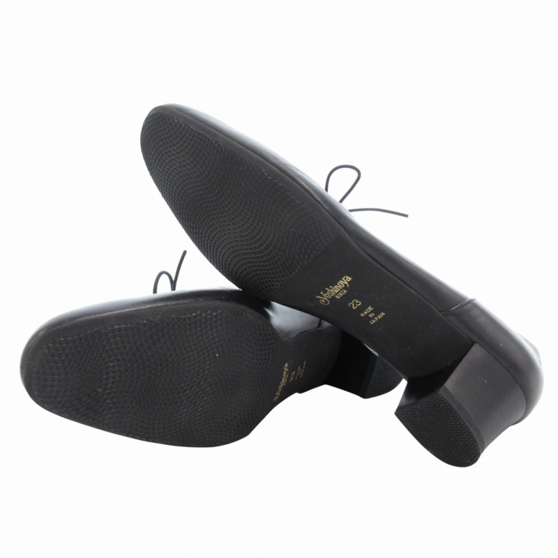 ヨシノヤ YOSHINOYA パンプス ローヒール スクエアトゥ リボン レザー 23cm 黒 ブラック /GV ■MET1 レディース