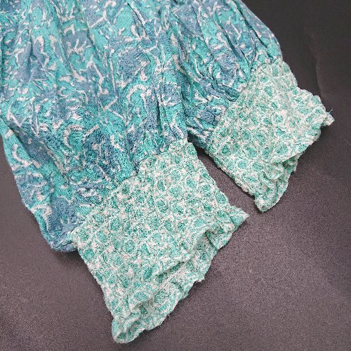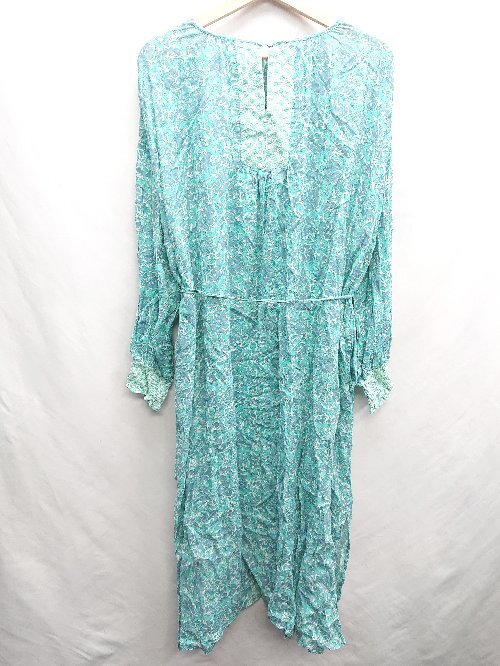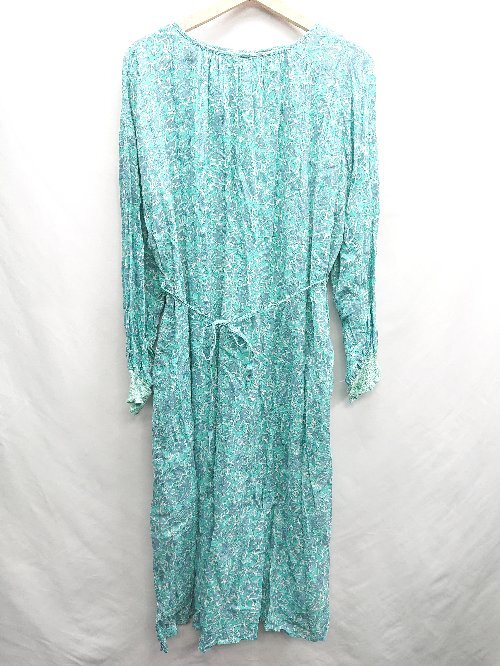 ◇ FREAK'S STORE フリークスストア 花柄 ウエスト紐付き 長袖 ロング丈 ワンピース サイズM グリーン ブルー レディース E