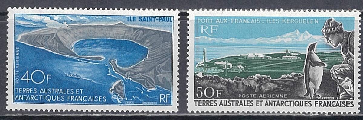 仏領南極地域 1968-9年 #C13-4(OH) St.Paul島風景とペンギン,観測隊員 / Cat.Val.$218.00-