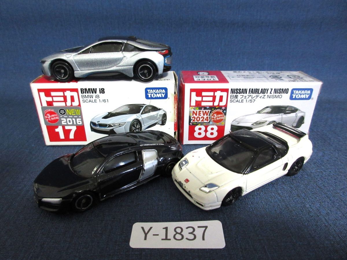 C1837Y トミカTOMICA 4点 内1点未開封 1/57 日産 フェアレディZ NISMO 1/61 BMW i8 1/59 ホンダ NSX-R 1/62 Audi R8 ミニカー 0718