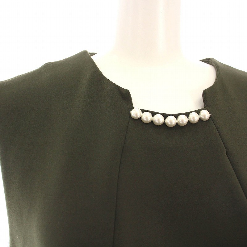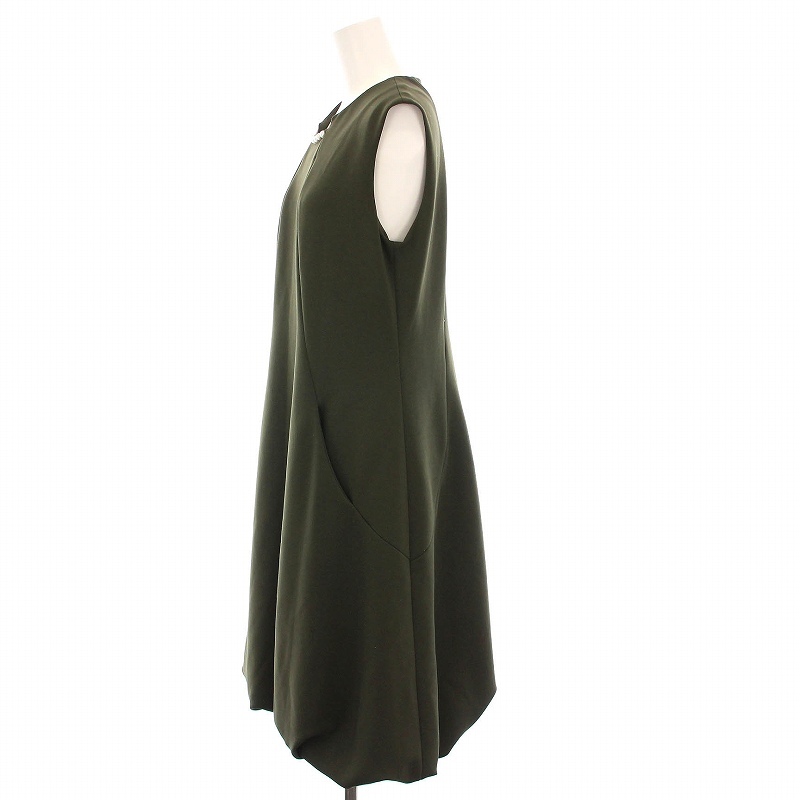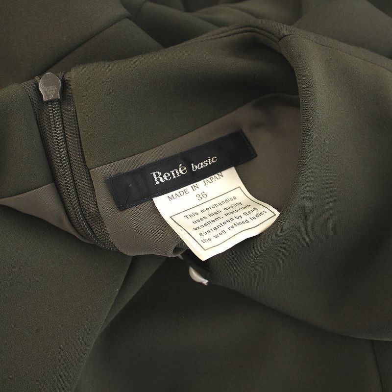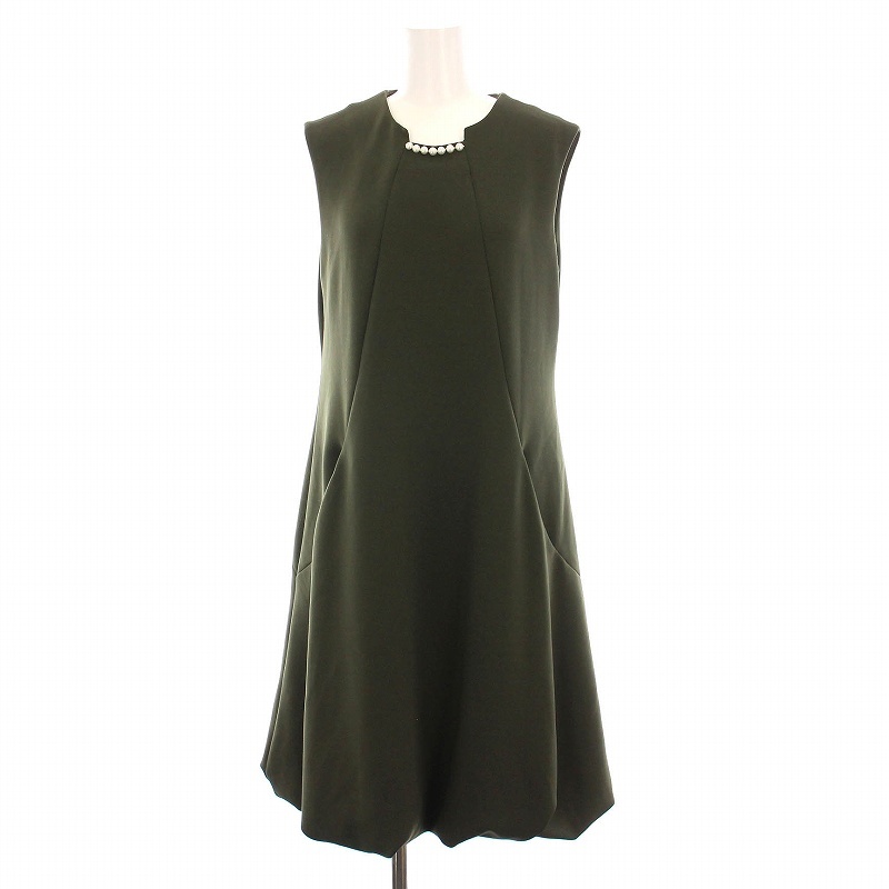 ルネ Rene basic ワンピース ひざ丈 ノースリーブ パール バルーンスカート 36 カーキ 5947030 /YM レディース