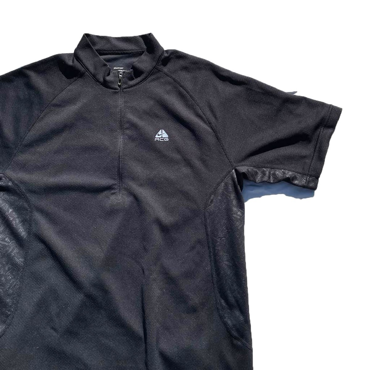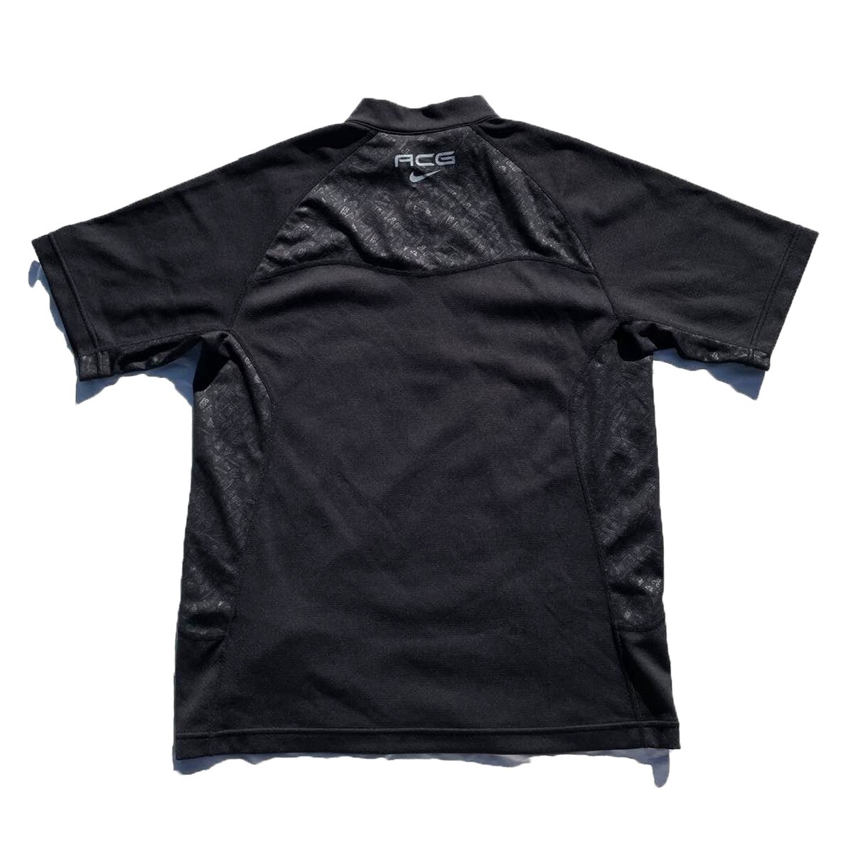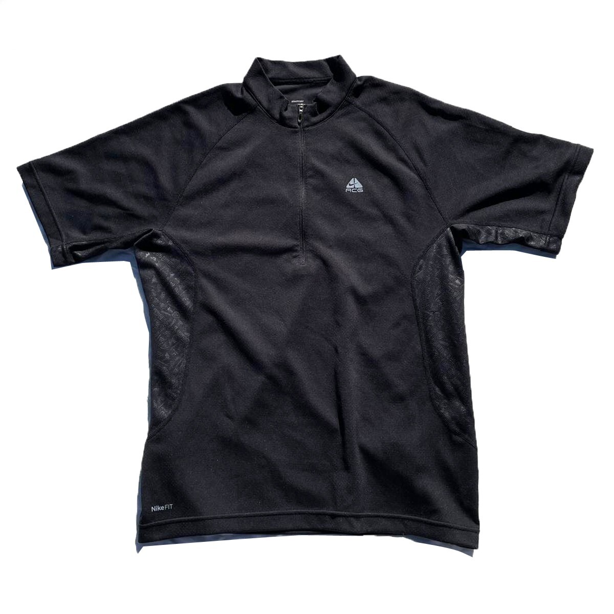 アウトドアギア! 00s NIKE ACG ナイキ DRI FIT BASE LAYER ハーフジップ プルオーバー ロゴ 半袖 Tシャツ ブラック 黒 M メンズ 古着 希少