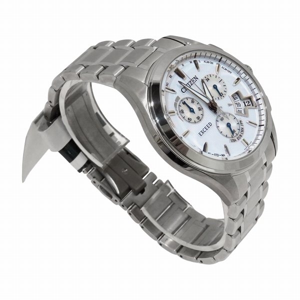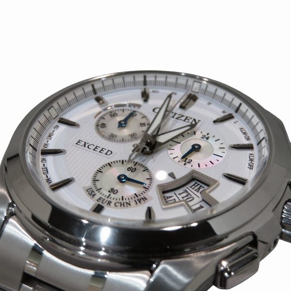 【ブランド】 シチズン 【商品名】 エクシード エコドライブ ダイレクトフライト 【型番】 EBS74-5101 【シリアル】 061000252 【ムーヴメント】 電波ソーラー 【材質】 チタン×サファイヤガラス 【サイズ】 ケース幅(リューズを含まず)×厚さ×腕回り(内径)×重さ 約42mm×12mm×21cm×91g 【カラー】 ホワイト文字盤 【付属品】 箱、保証書、バンド調整器具、新品タグ 【ランク】 N (新品・未使用品) 【状態】 風防:キズなし 文字盤:劣化なし 針:劣化なし リューズ:キズなし ケース:キズなし ベゼル:キズなし ベルトのキズ:小キズあり ベルトの伸び:なし その他コメント:現在稼働品。クロノグラフ機能確認済み。 未使用品ですが保存時の小キズがございます。 ※6ヶ月保証(注1 | |