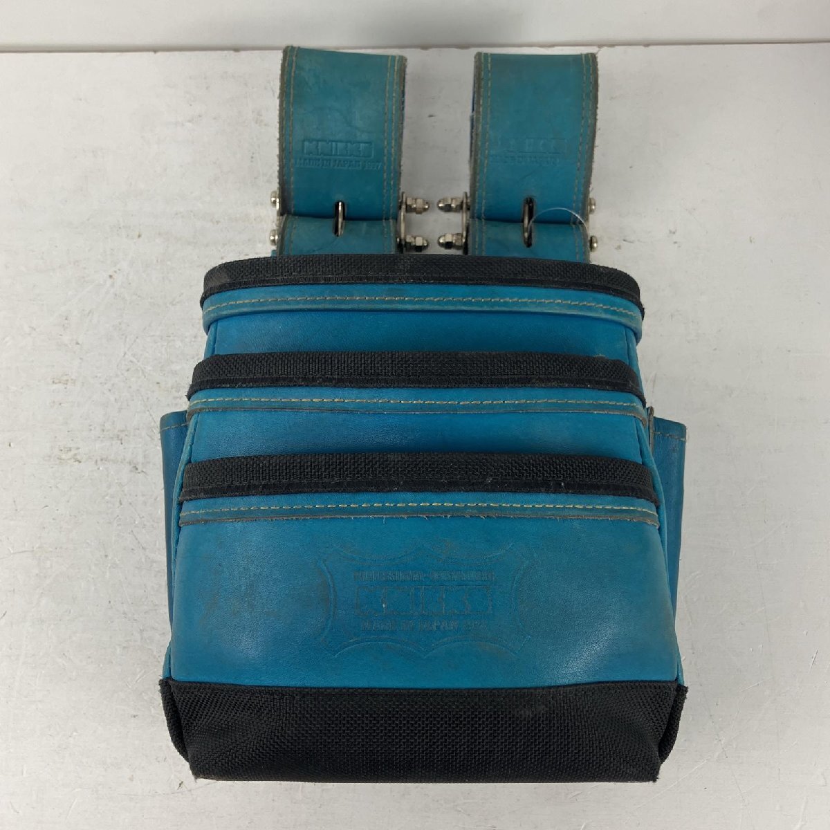 ЗЗ KNICKS 受注生産品 最高級硬式グローブ革 チェーンタイプ3段腰袋 KGBL-301DDX ブルー 傷や汚れあり