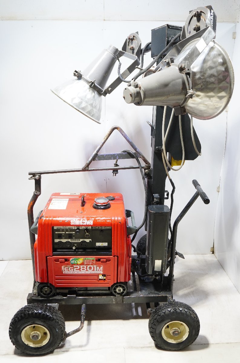 ■カテゴリー別のリンクはこちら■ →測定器・アマチュア無線 →工具・農業機械 →カメラ・映像機器 →オーディオ・楽器 →スポーツ・レジャー・自動車関連 →PC・周辺機器・ゲーム →ミシン・店舗用品・その他 ※便宜上、送料0円(送料無料)と表示されていますが、 実際の送料は無料ではなく、着払いになります。 落札後、住所確認致しましたら、送料のお見積りをお知らせいたします。 商品お受け取り時に配送業者にお支払いください。 ■商品説明■ ***************************** 全体サイズ: 約 106× 90× 175(高)cm パレット込みサイズ: 約 126× 110× 190(高)cm 100V 50Hz 当方でできる限りのテストをしたところ 特に問題なく動作することを確認しました。 発電機:新ダイワ Shindaiwa iEG2801M メタルハライド灯安定器:岩崎電気 WML4FL1A60 が使用されています。 本商品に対して専門ではないために 実演など細部に渡る細かなチェックはできておりません。 また、中古品としてご理解いただき、 ジャンク品としてノークレーム・ノーリターンでお願い致します。 ■外観■ 状態については写真判断の程よろしくお願いいたします。 中古品ですのでキズ、汚れ、擦り傷、サビなどが有ります。 付属品に関しては、写真の物が全てです。 バッテリー付属しません。 ******************************** 台車やパレットを撮影用に使用している場合、付属しません。 バッテリー等の消耗品が付属する場合 どの程度消耗しているか不明ですので、保証は致しかねます。 ガソリンやオイルを使用している商品の場合は、 配送中の油漏れ防止のため 抜いて発送致しますので、ご了承ください。 ******************************* ノークレーム・ノーリターンでお願いいたします。 | ||||